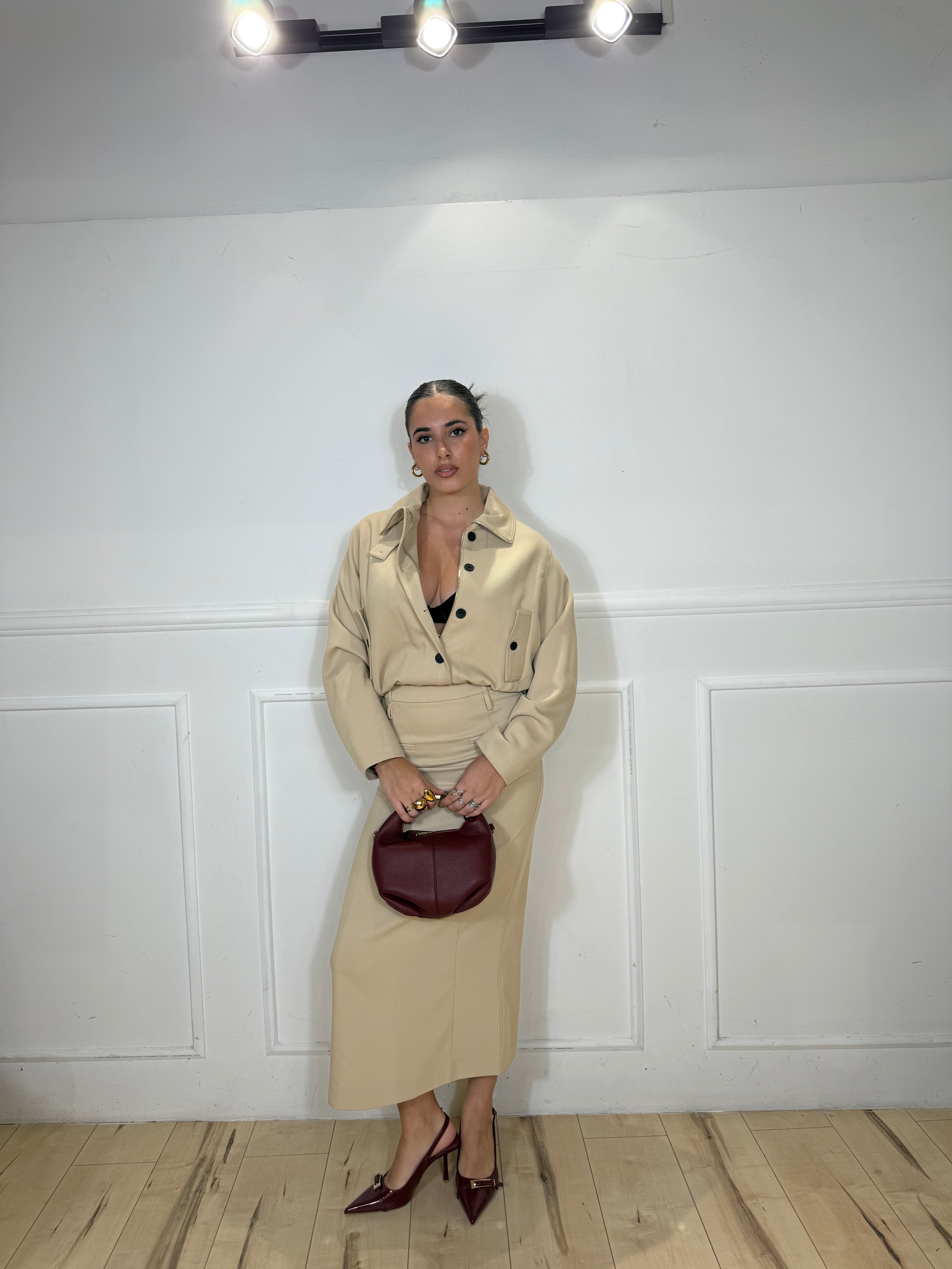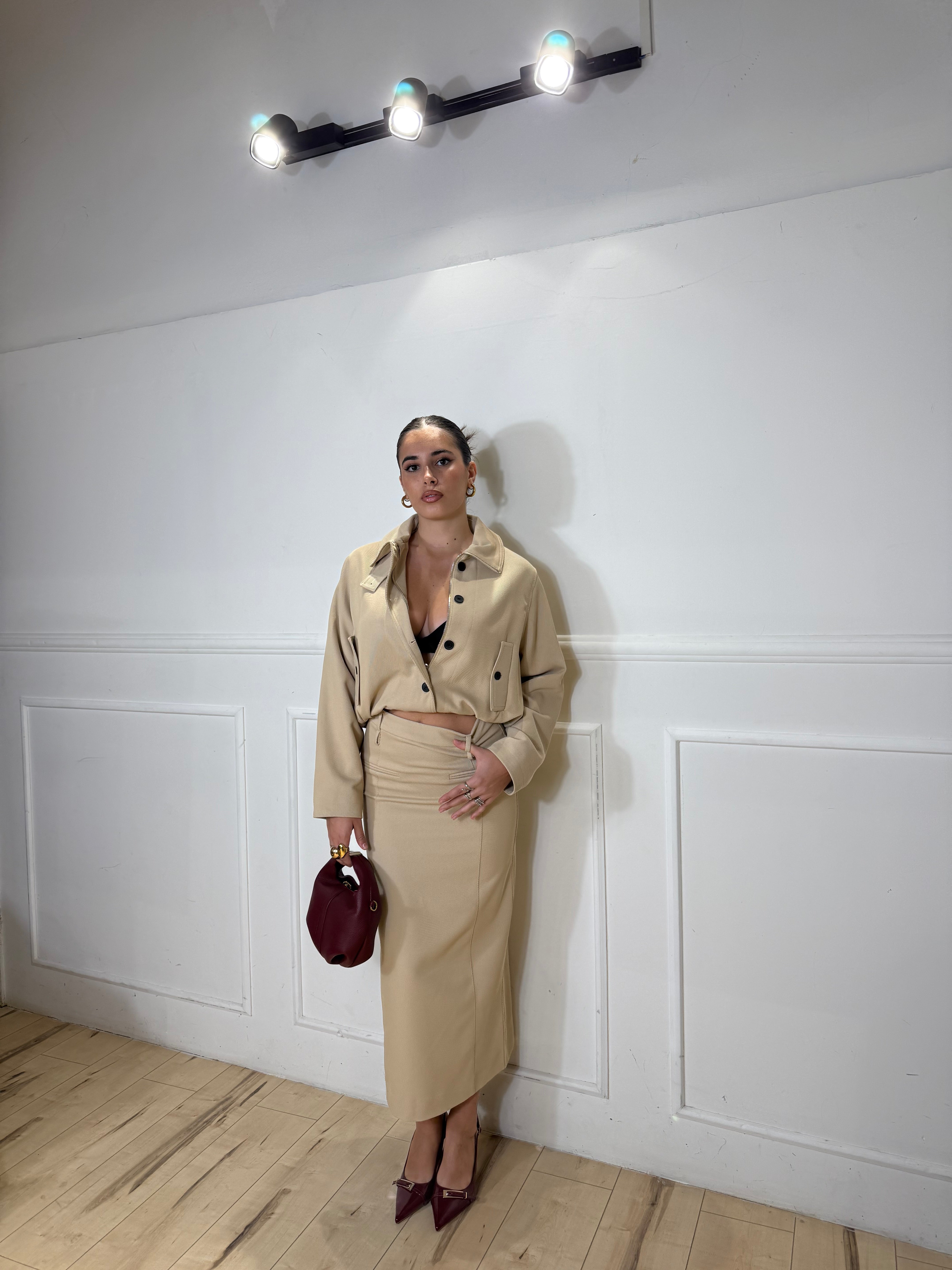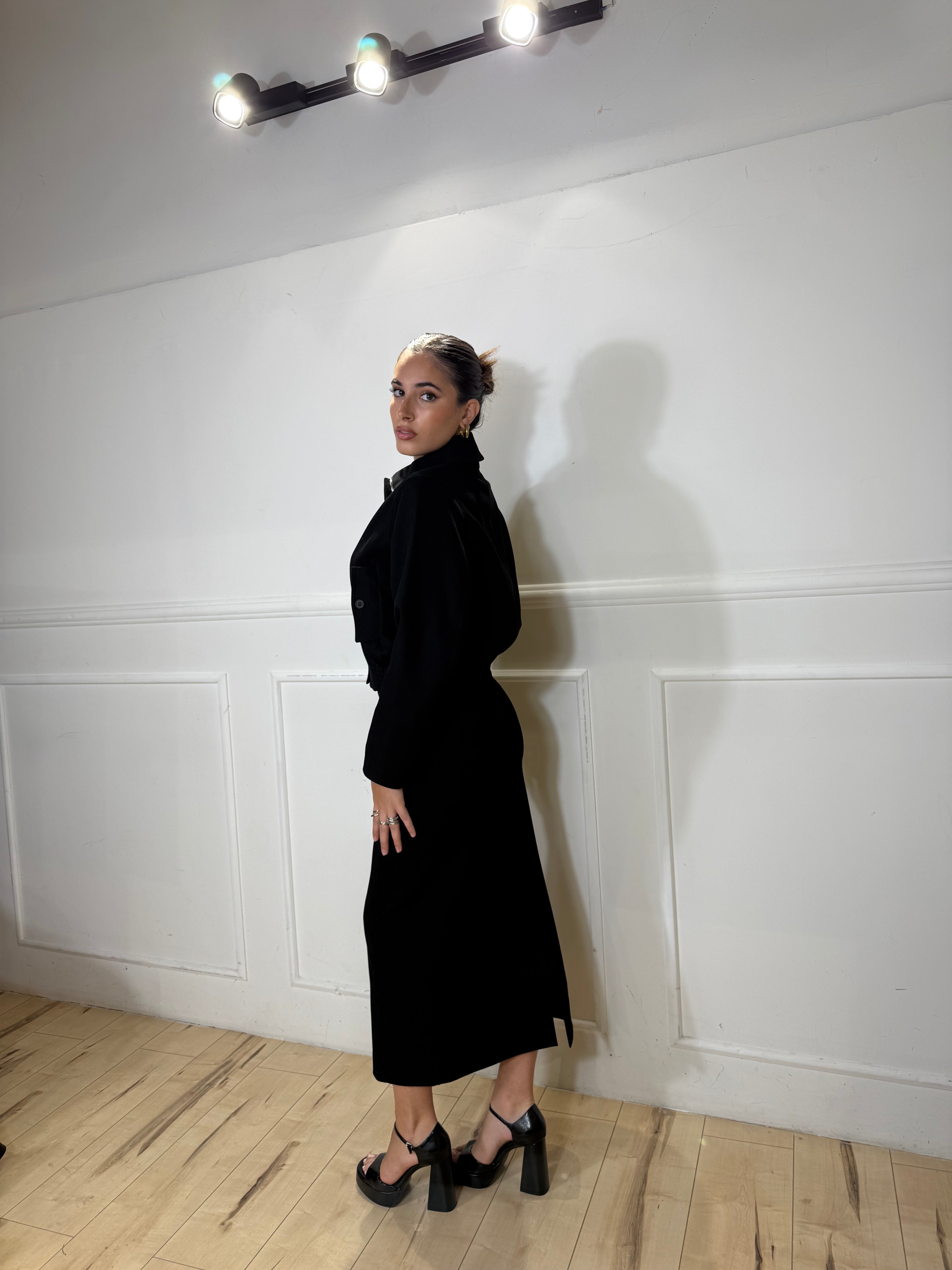 Gonna lunga a vita alta con spacco dietro, disponibile in taglia unica.