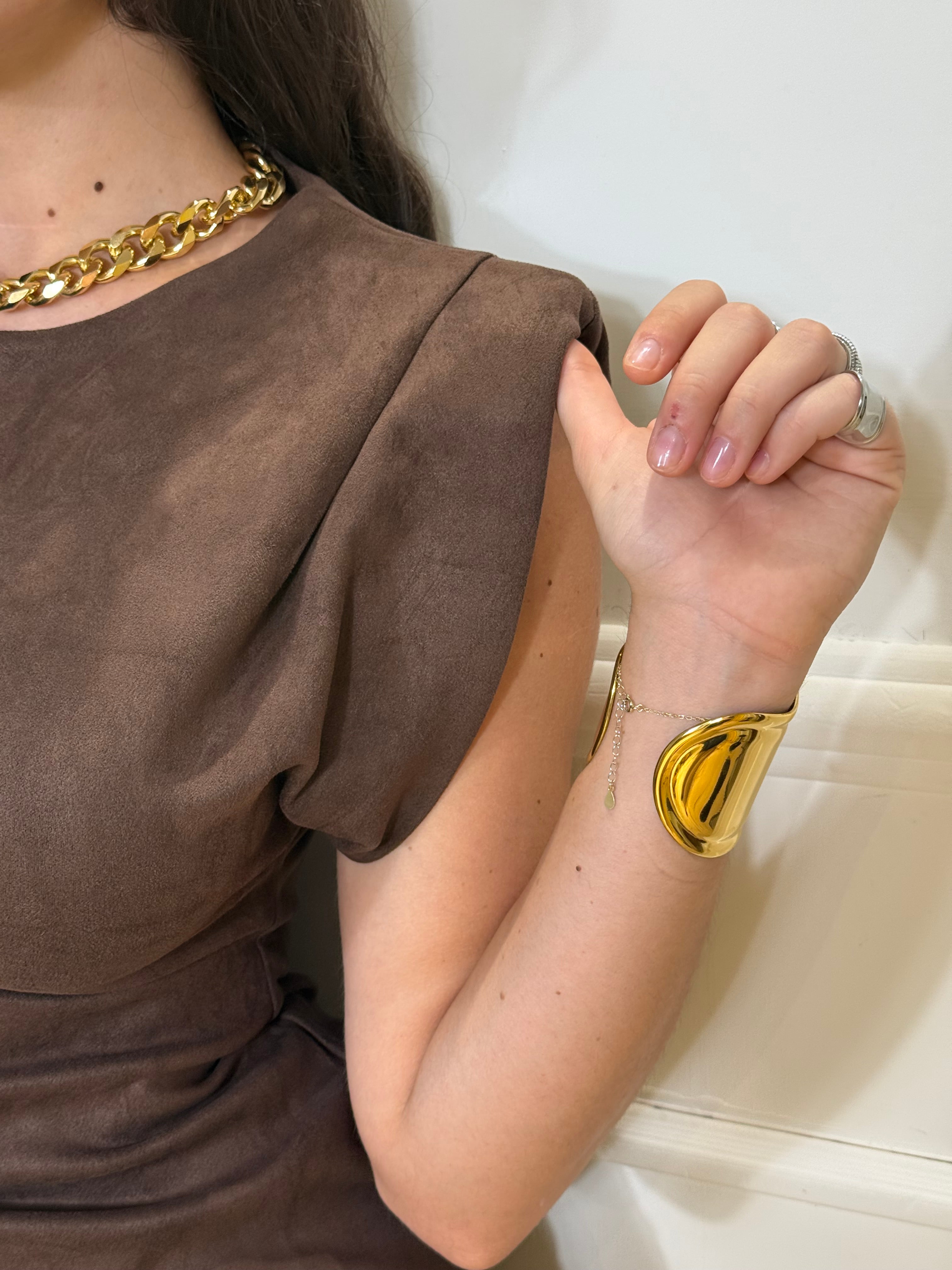 Abito giromanica con spalline in camoscio elasticizzato. Disponibile in taglie.