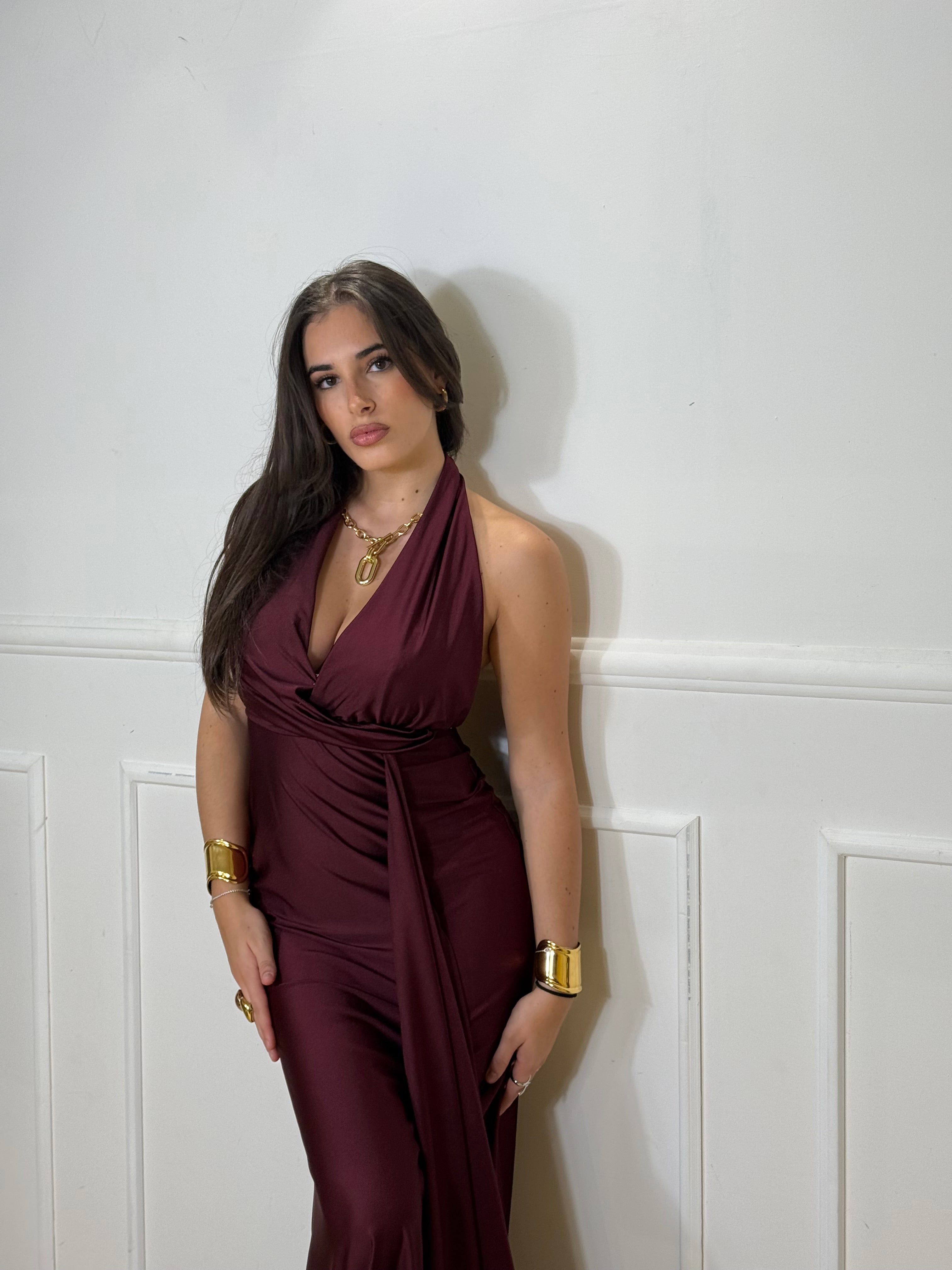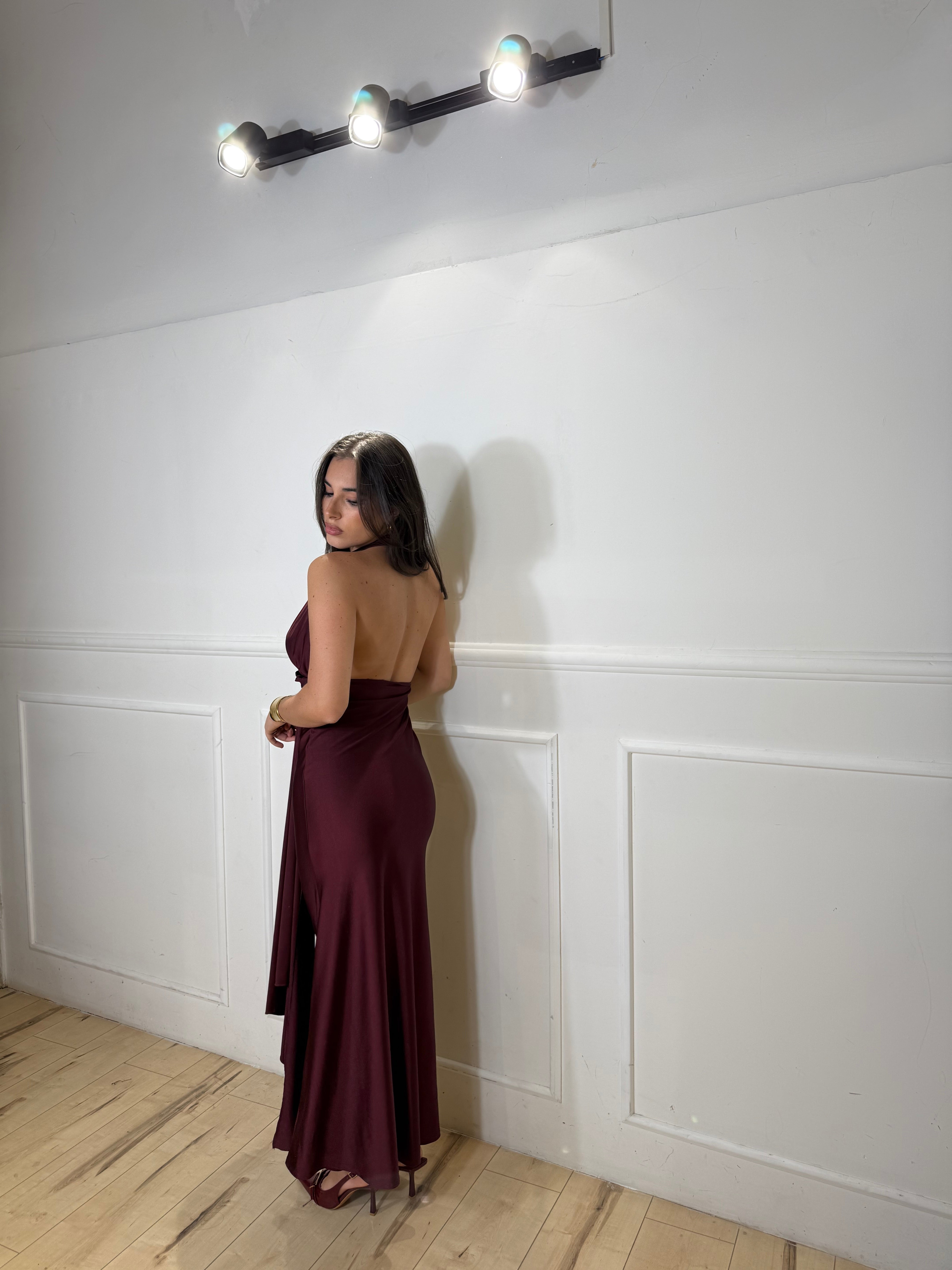 Abito lungo in lycra elastico con scollo sulla schiena e vestibilità morbida sul fondo. Disponibile in taglia unica.