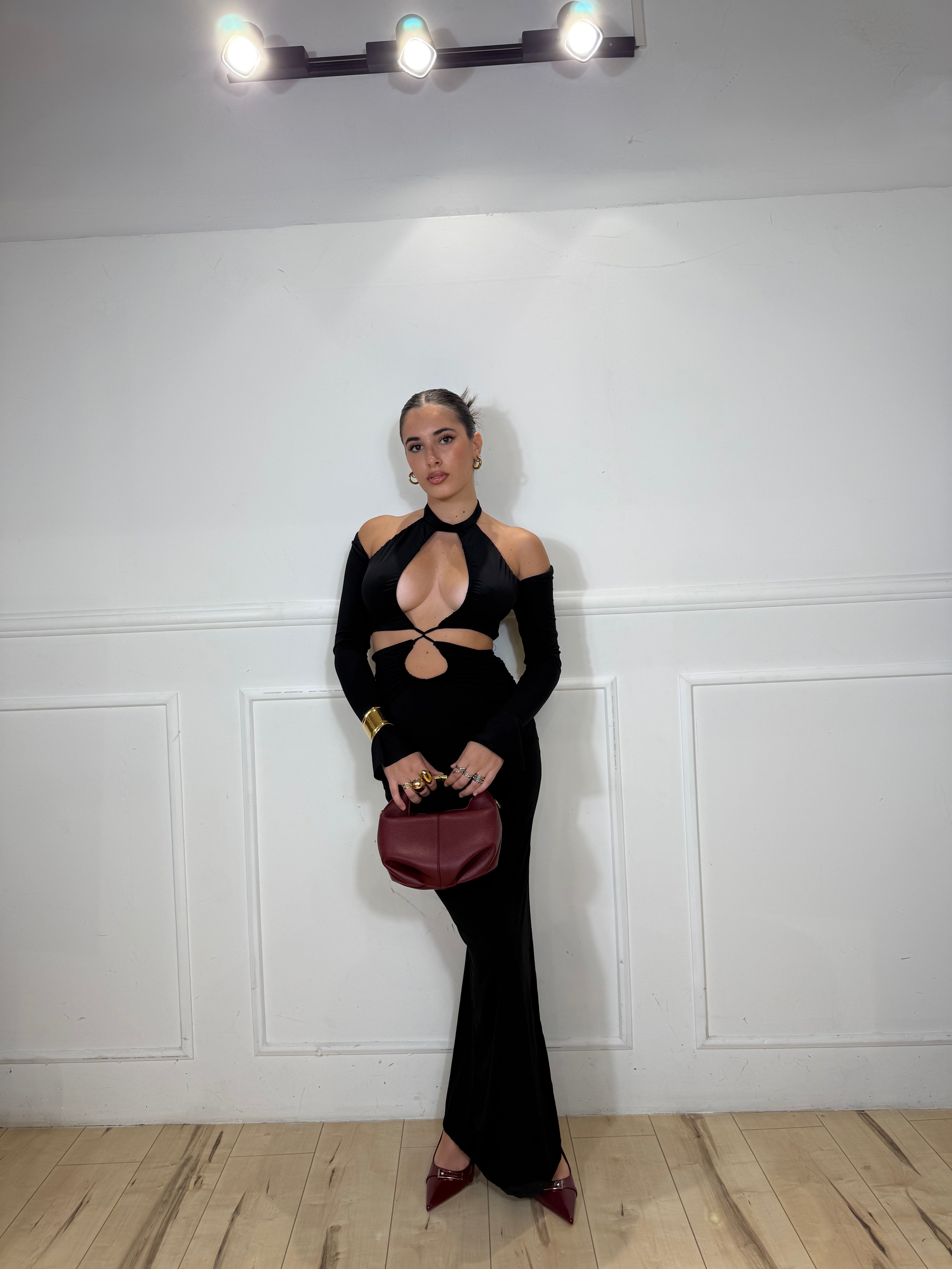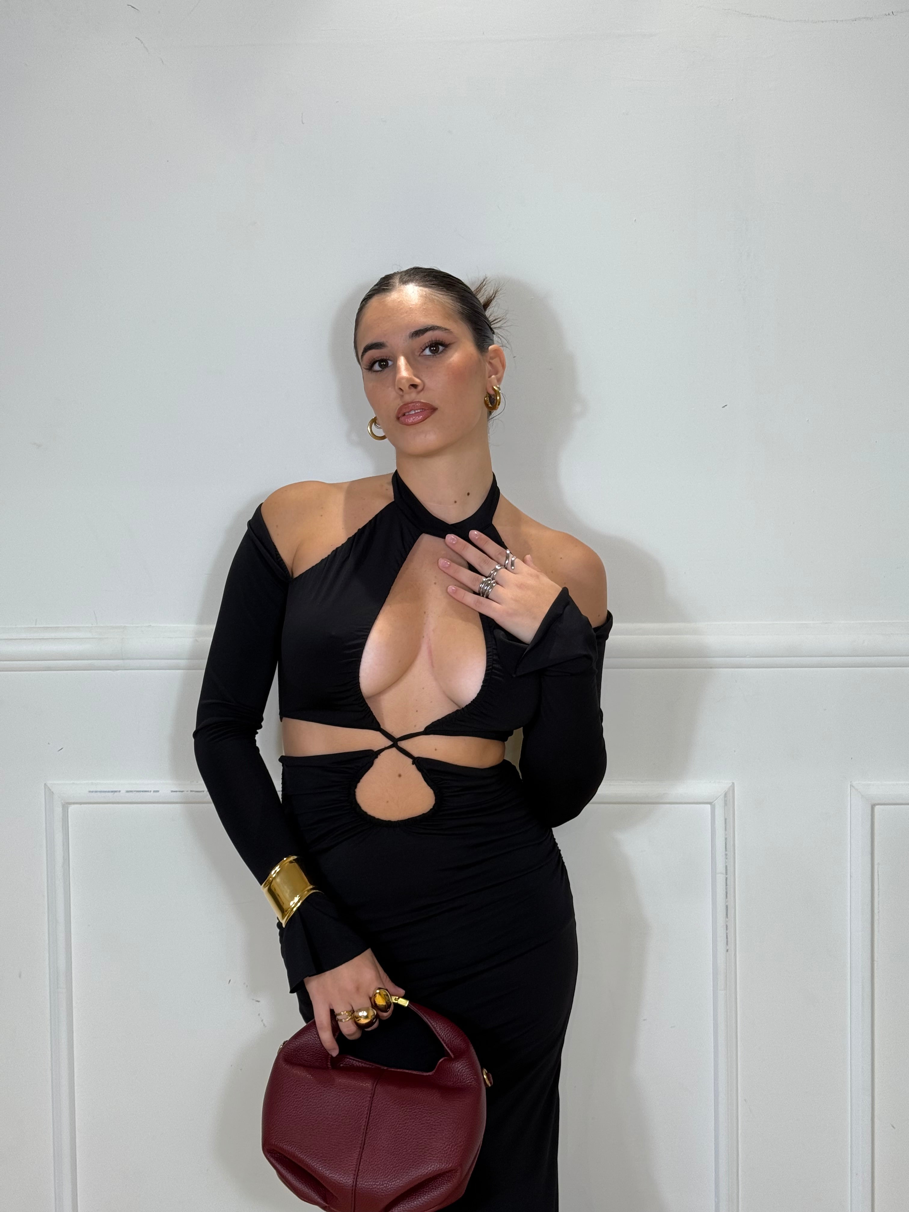 Abito in tessuto elasticizzato, disponibile in taglia unica, veste bene fino ad una taglia 46.