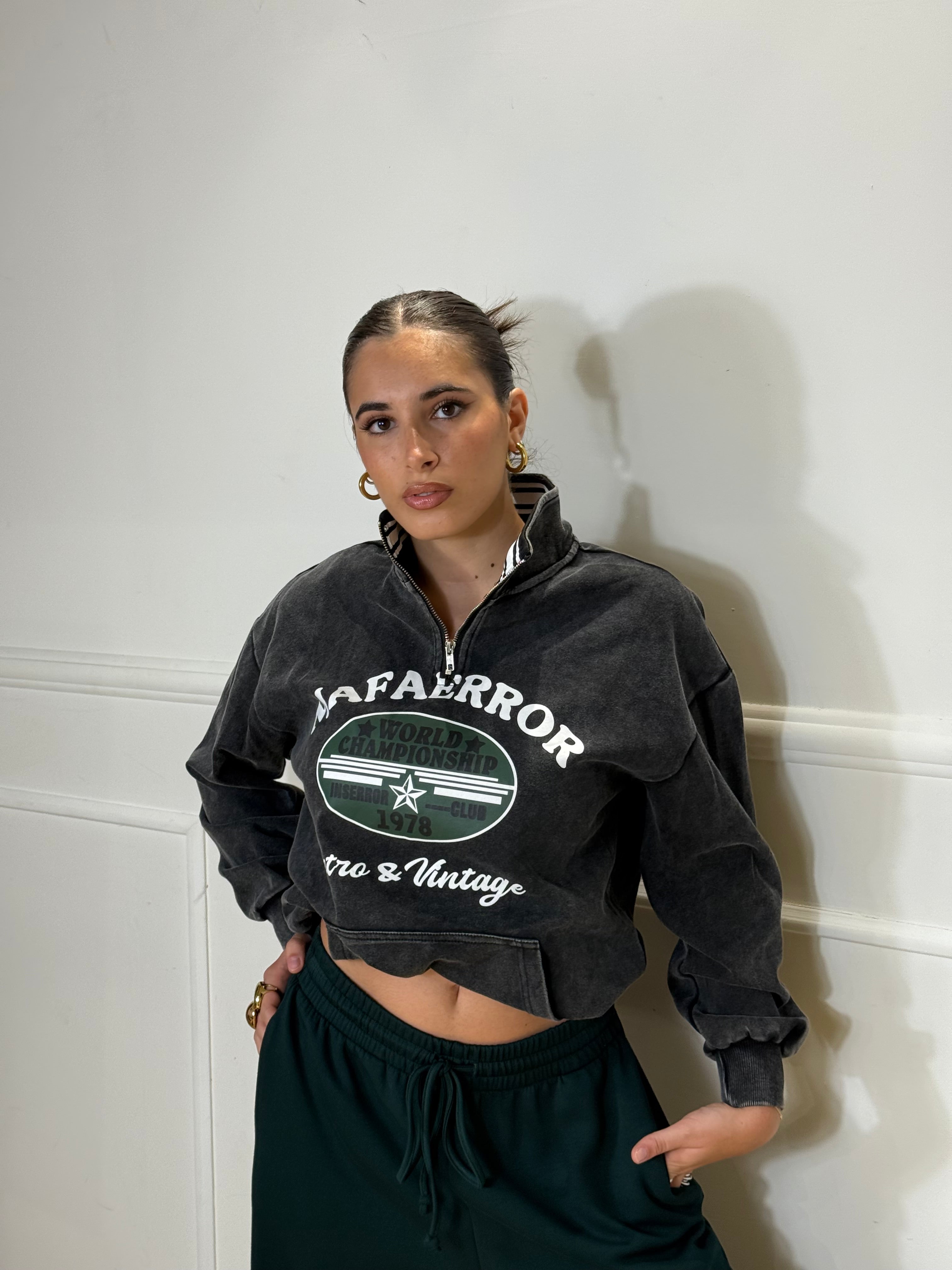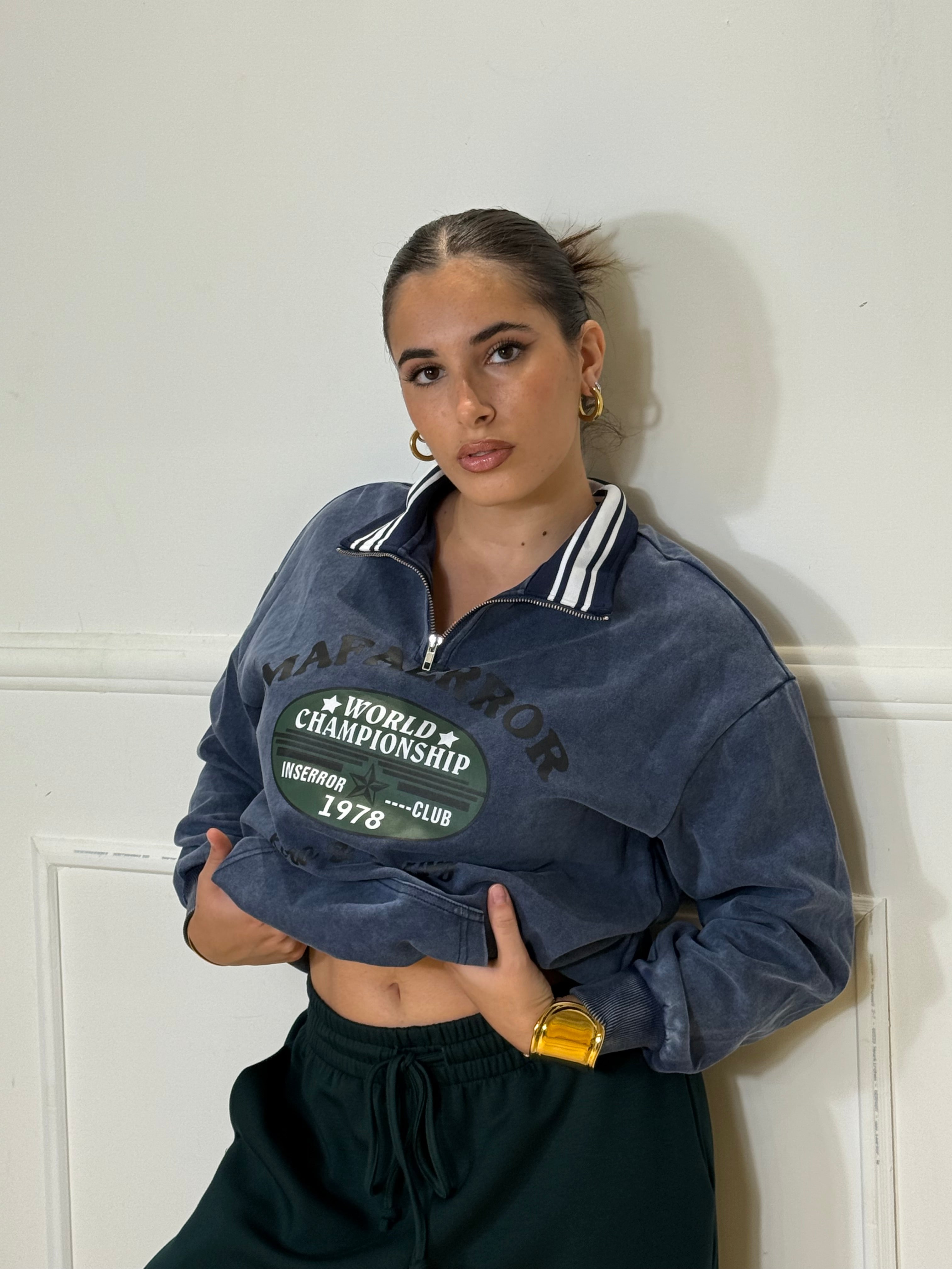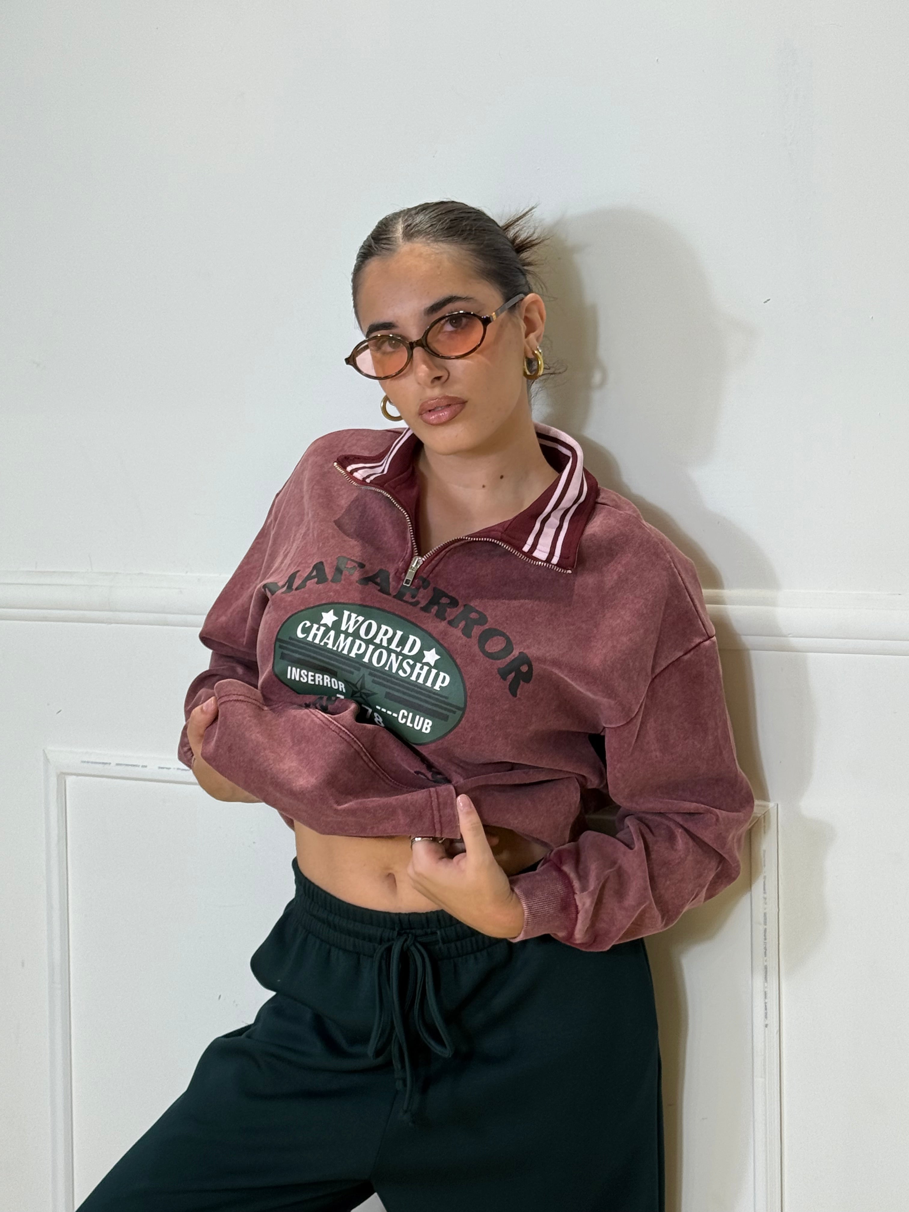 Felpa over Size con zip ed elastico in vita e sui polsi, disponibile in taglia unica.