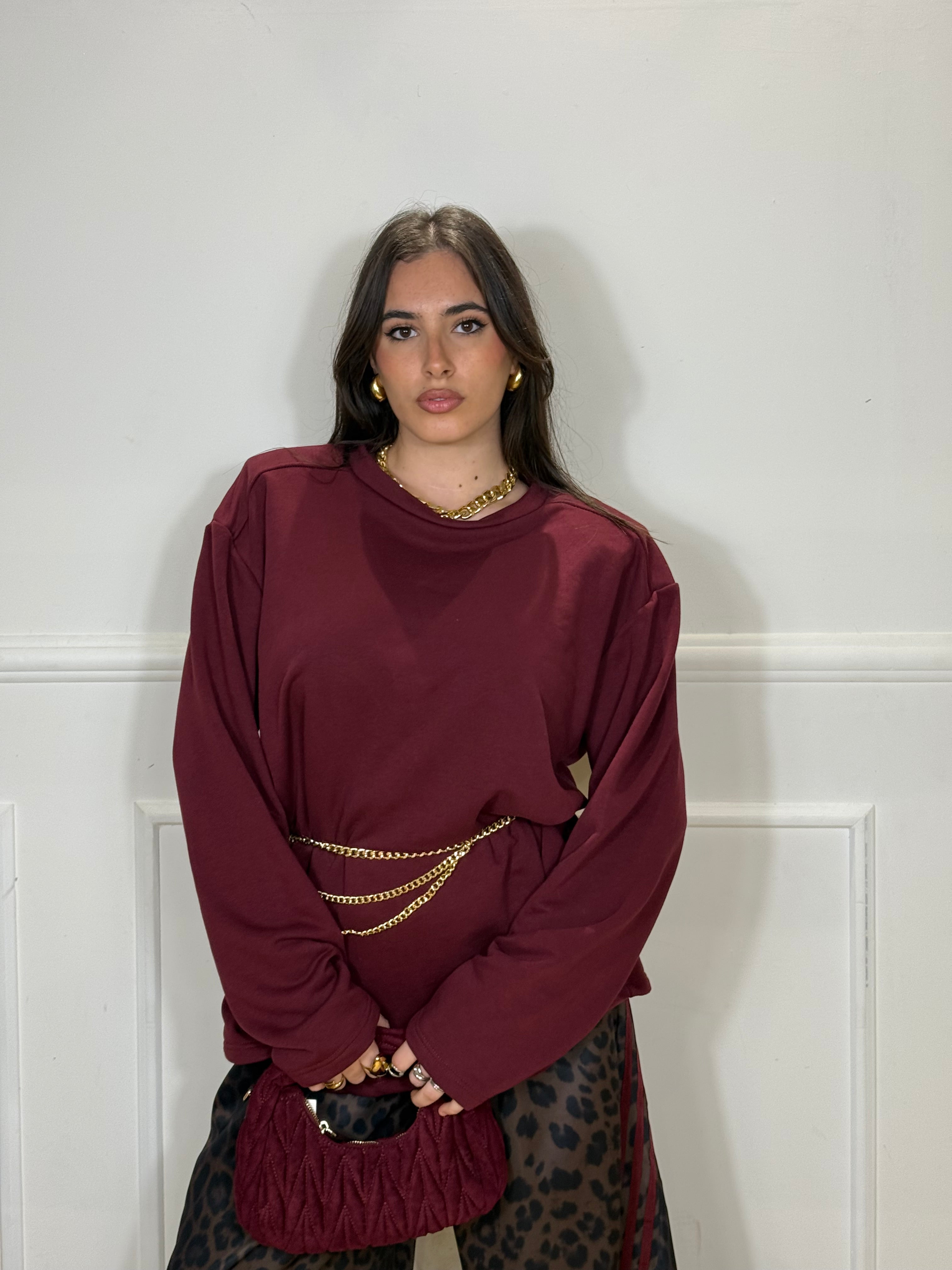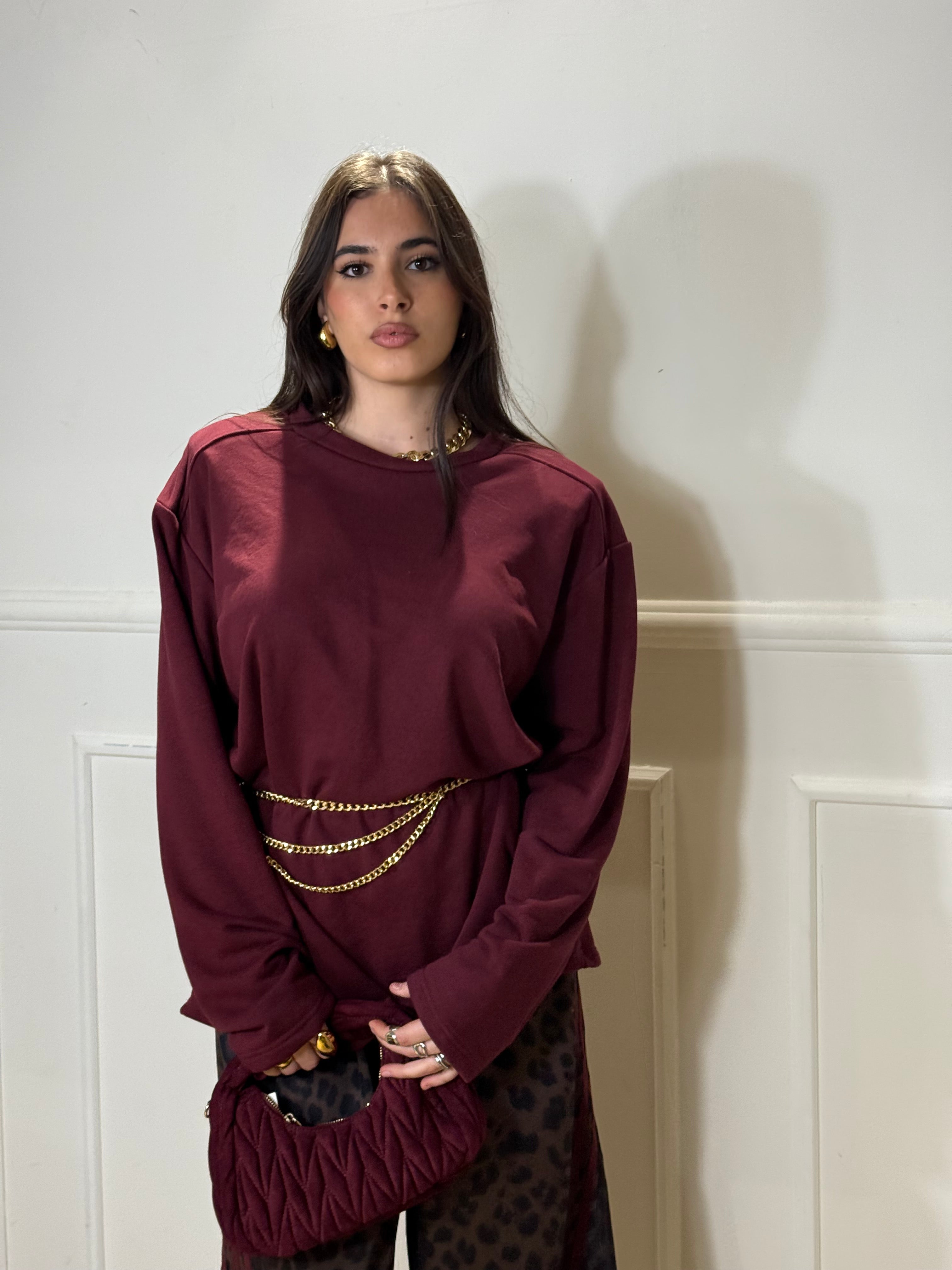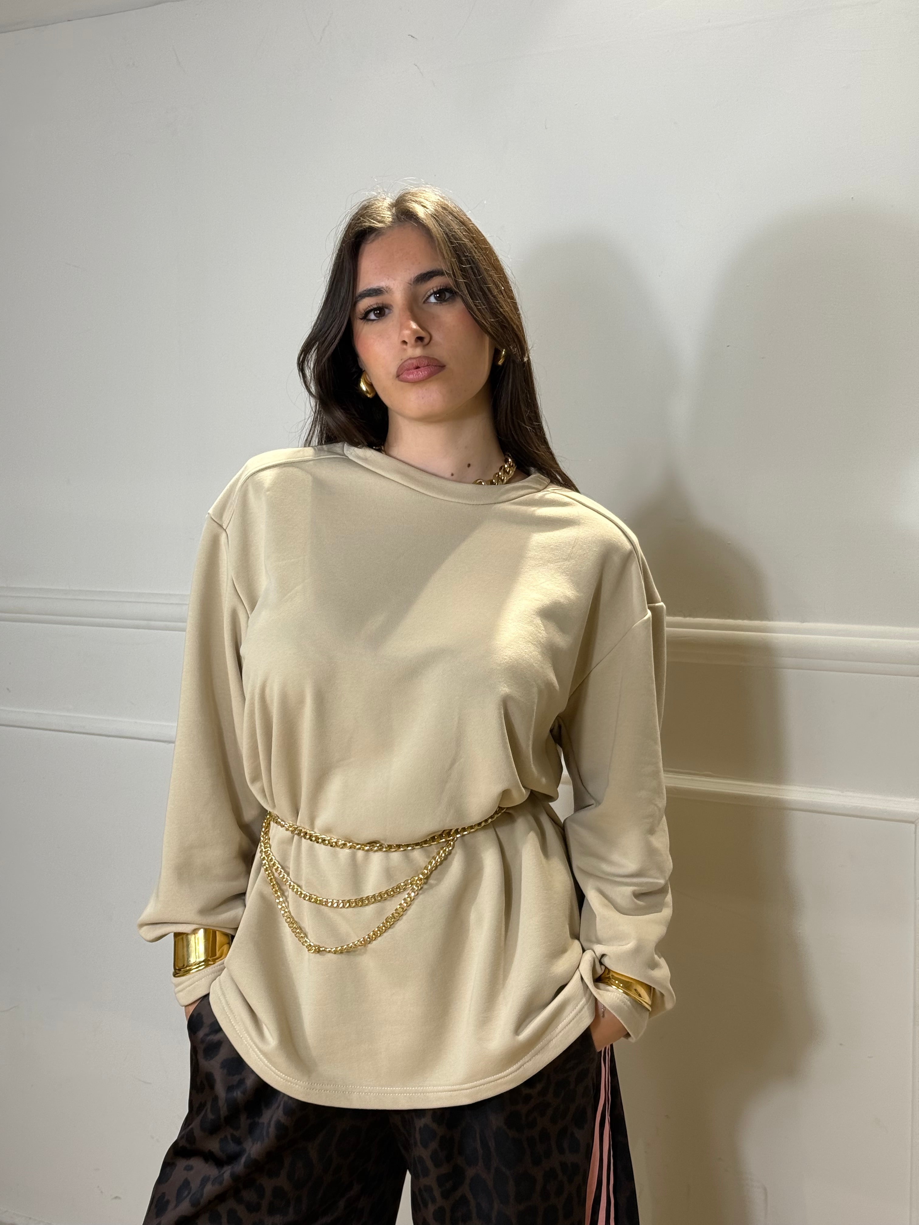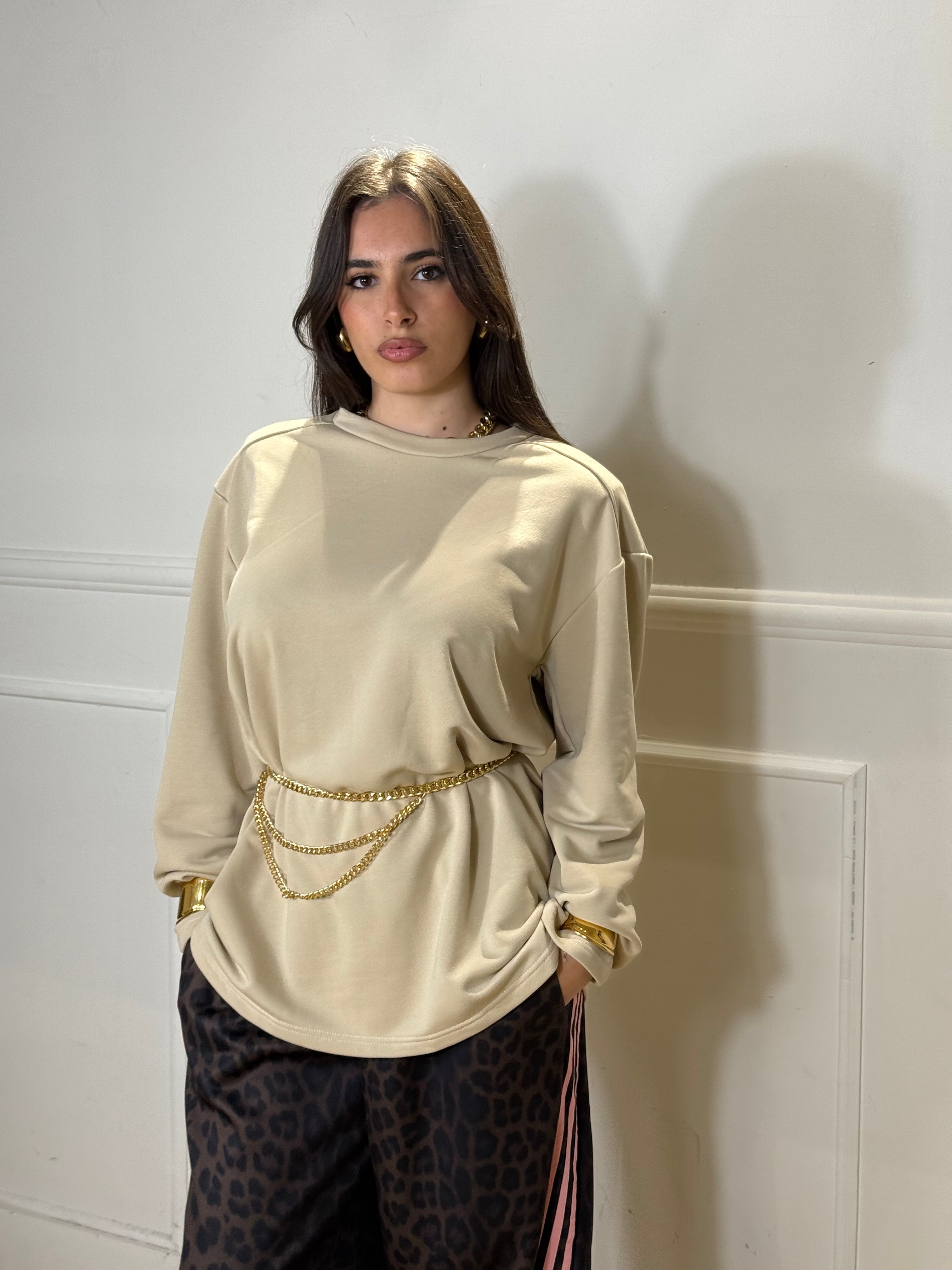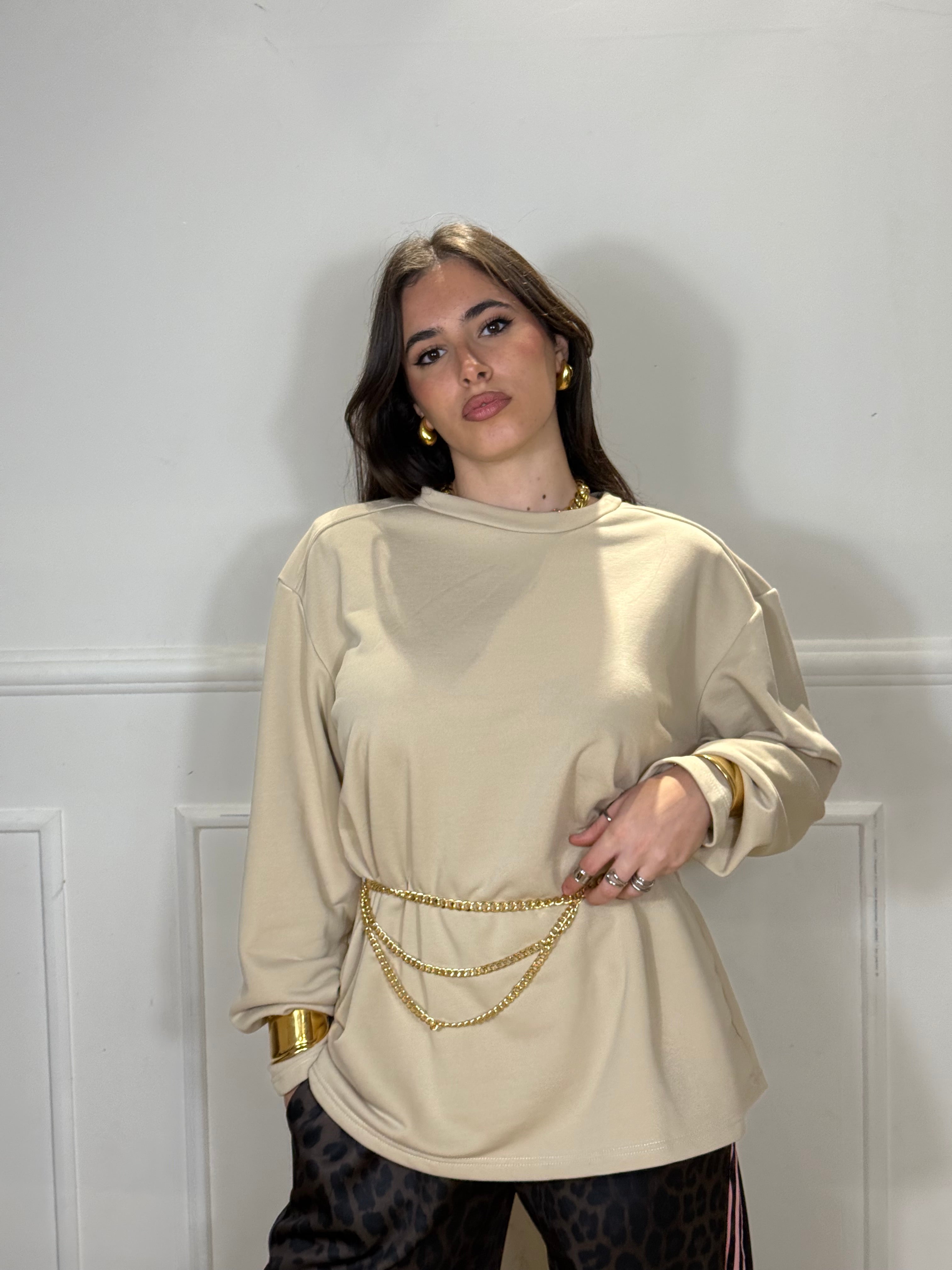 Felpa over Size garzata con spalline in cotone. Disponibile in taglia unica, veste bene fino ad una taglia 46/48.