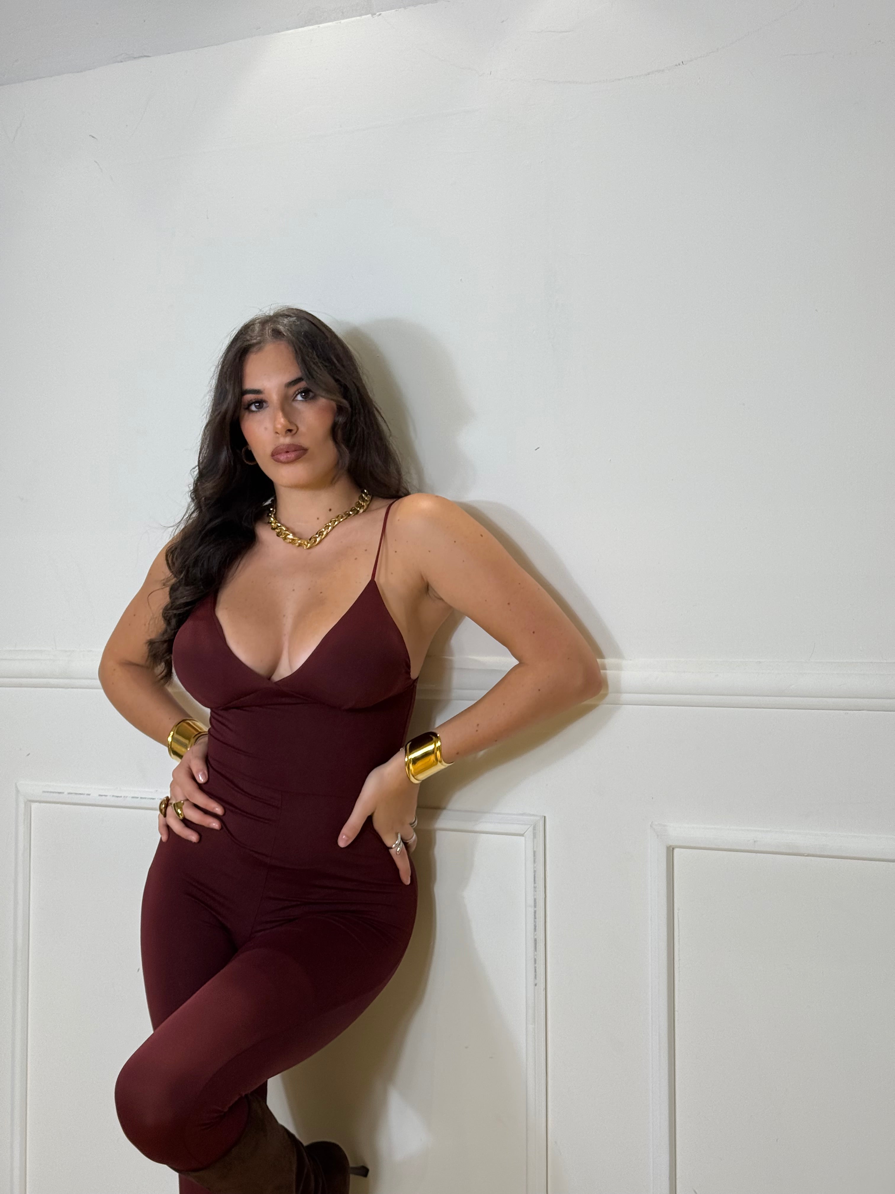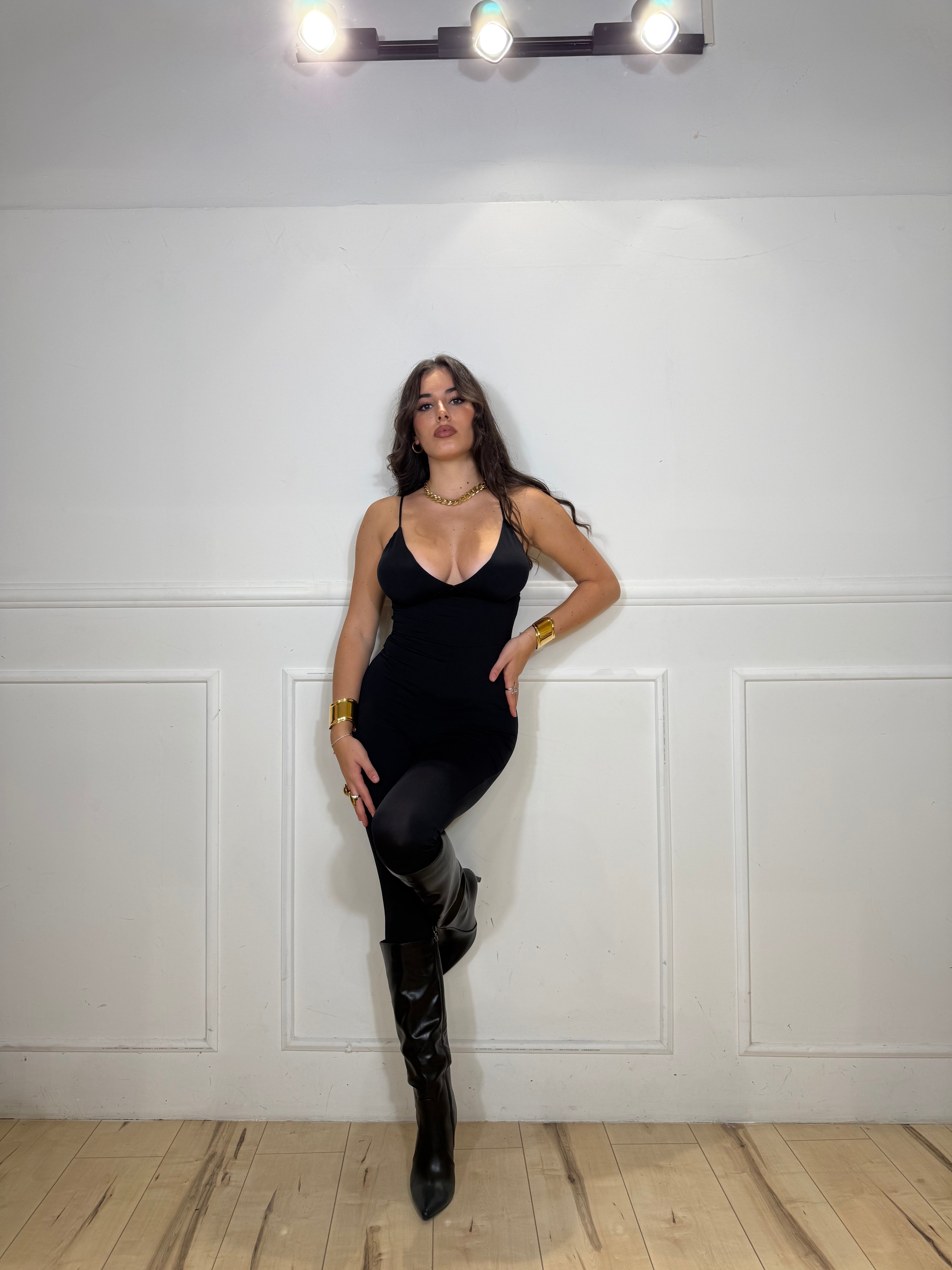 Tuta in lycra elasticizzata, con coppetta preformata, disponibile in taglia unica ma veste bene fino ad una taglia 48.