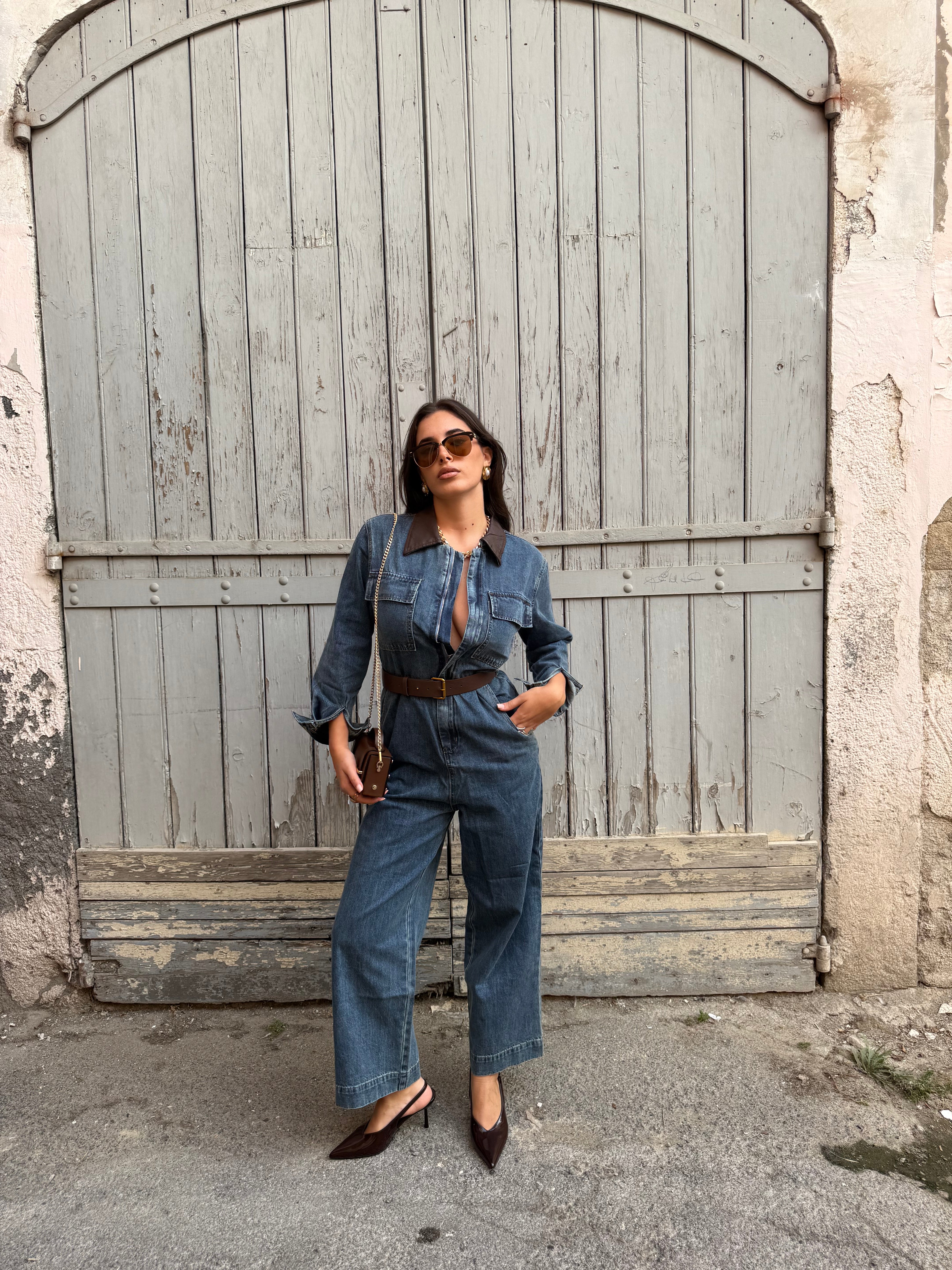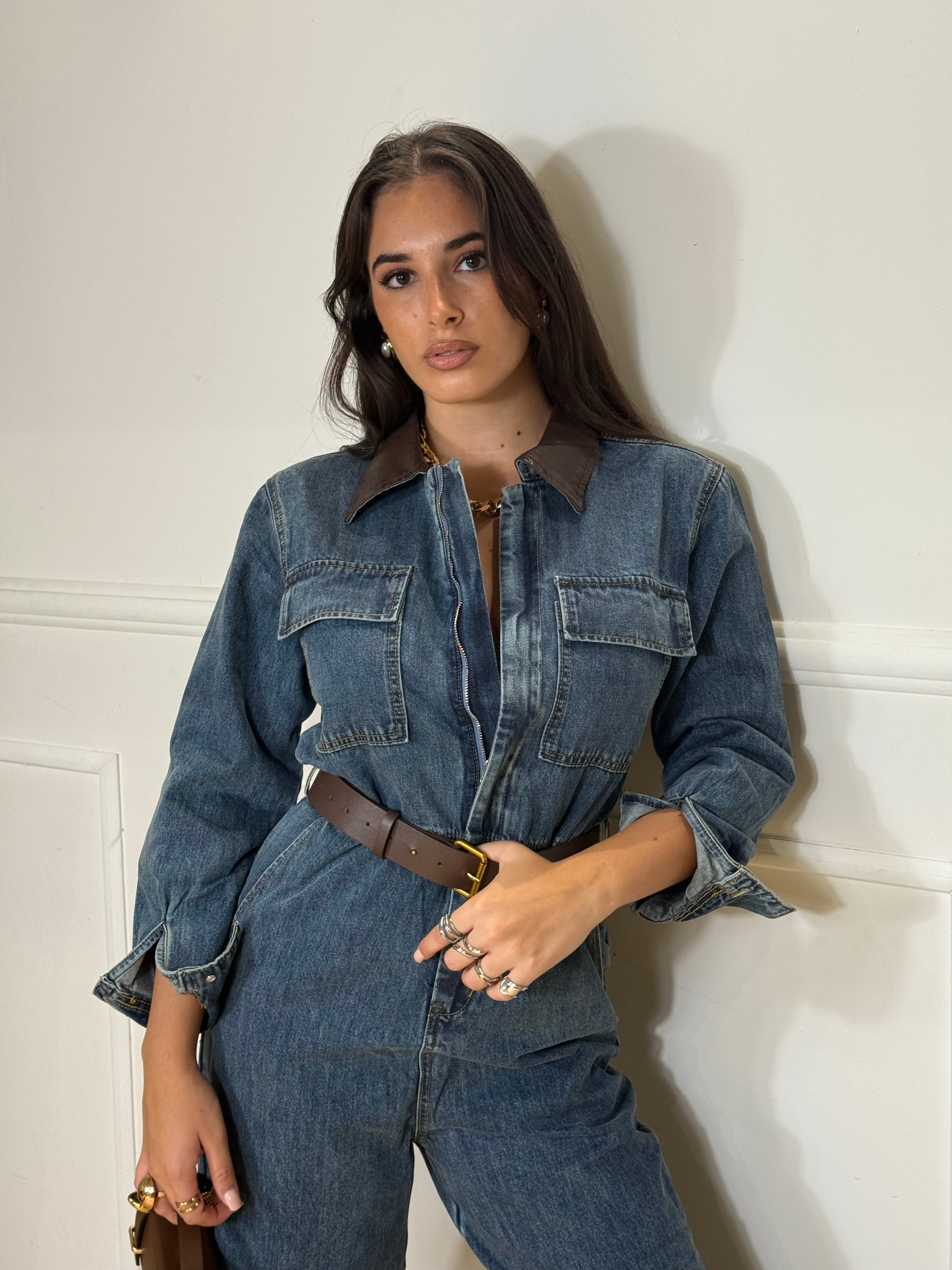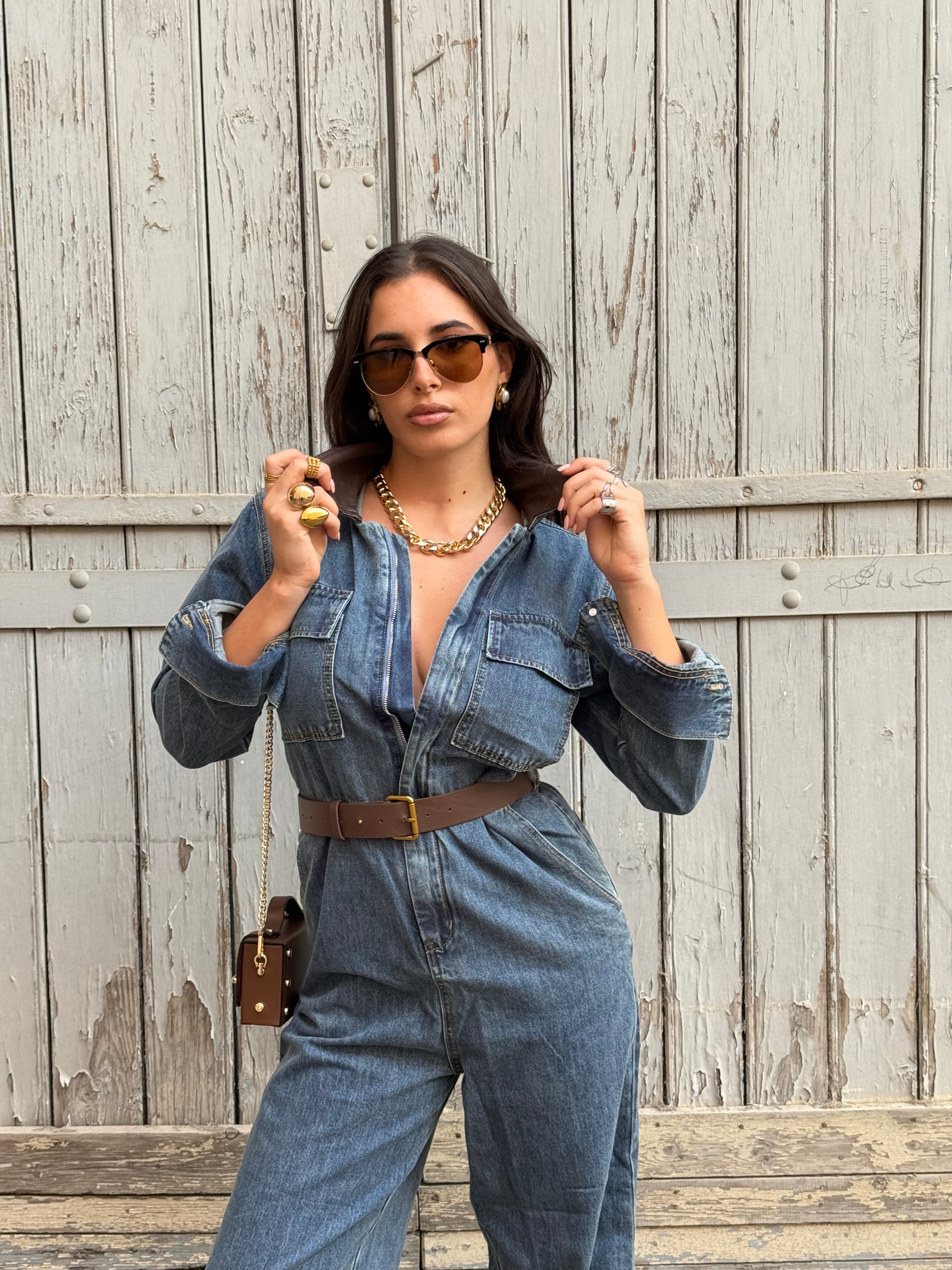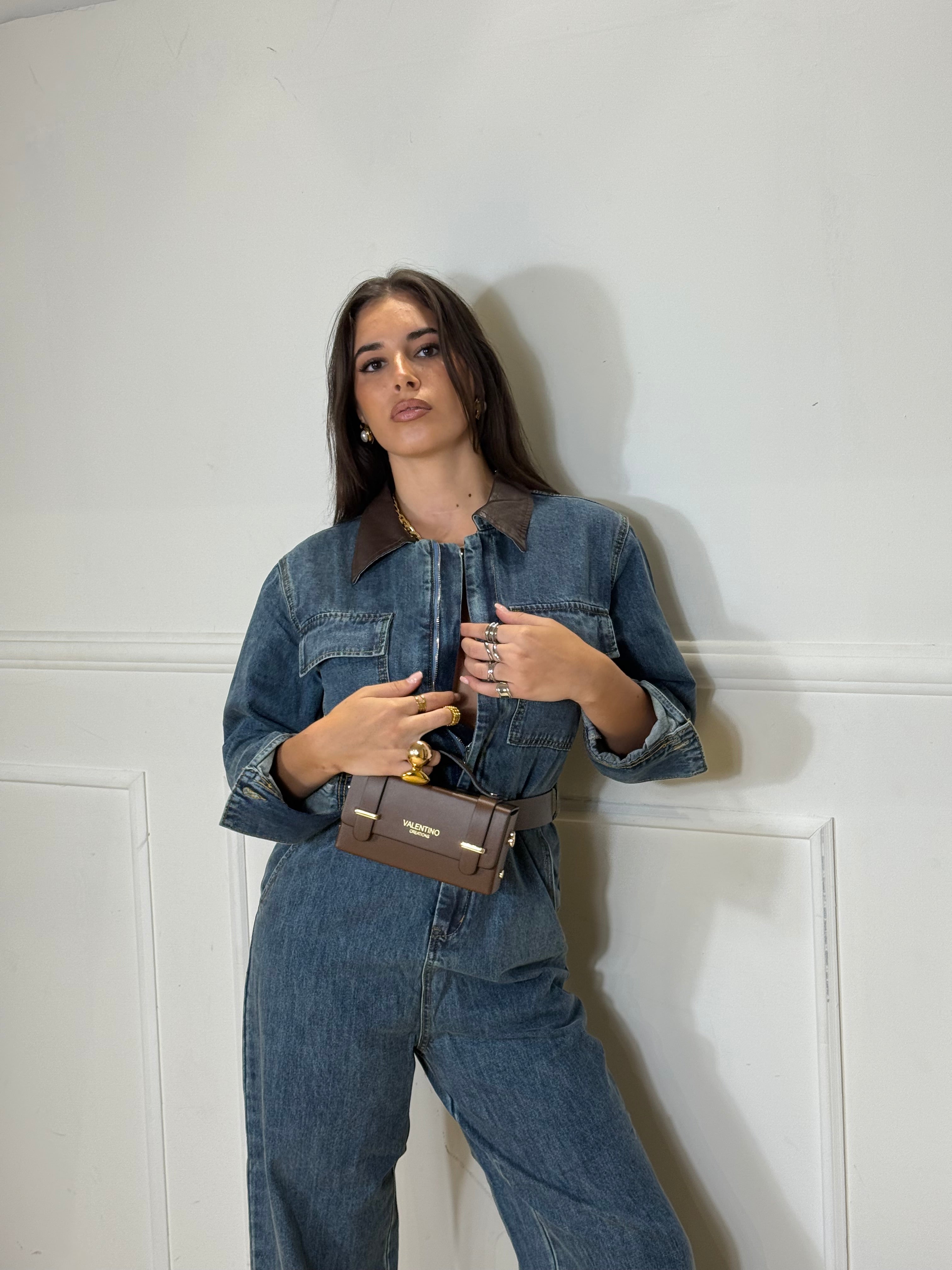 Tuta intera in Denim rigido, poco elastico. Disponibile in taglie.