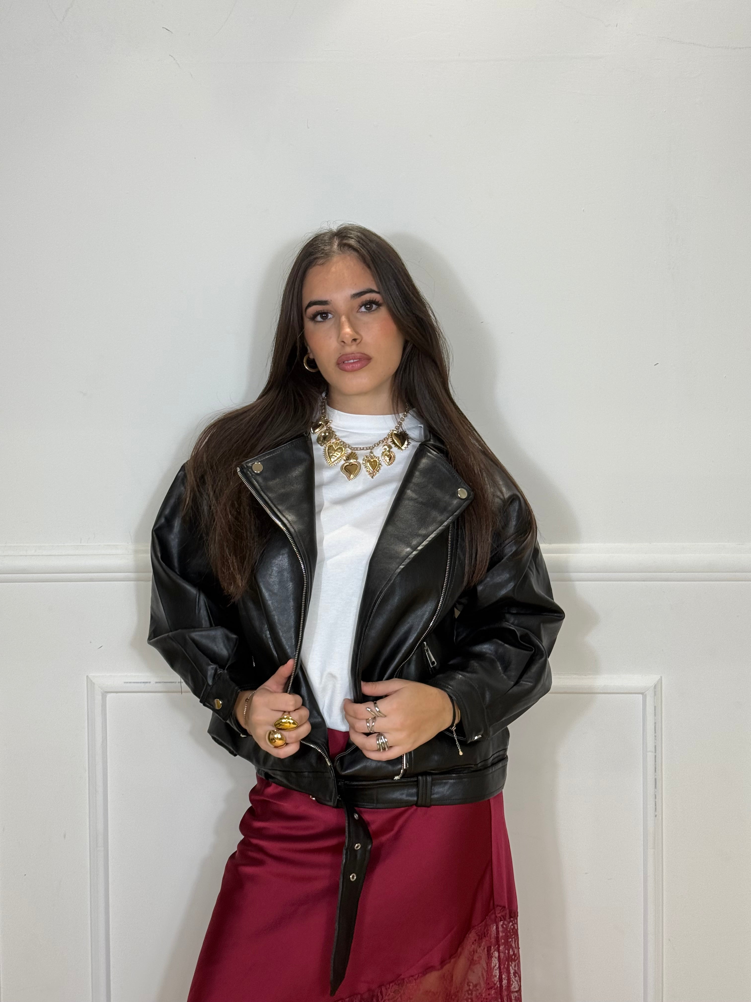 Chiodo in pelle morbidissima, foderato internamente. Disponibile in taglie
