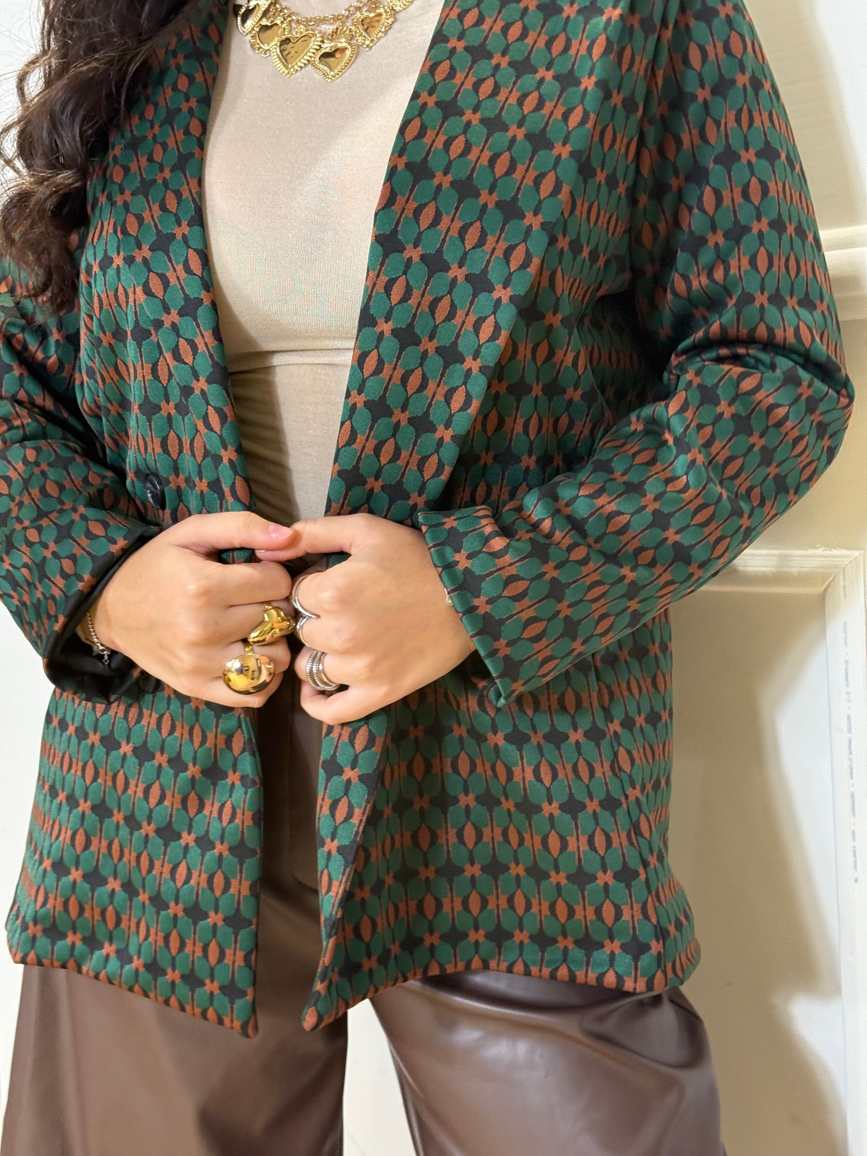 Giacca a fantasia, foderata all’interno. Disponibile in taglia unica.