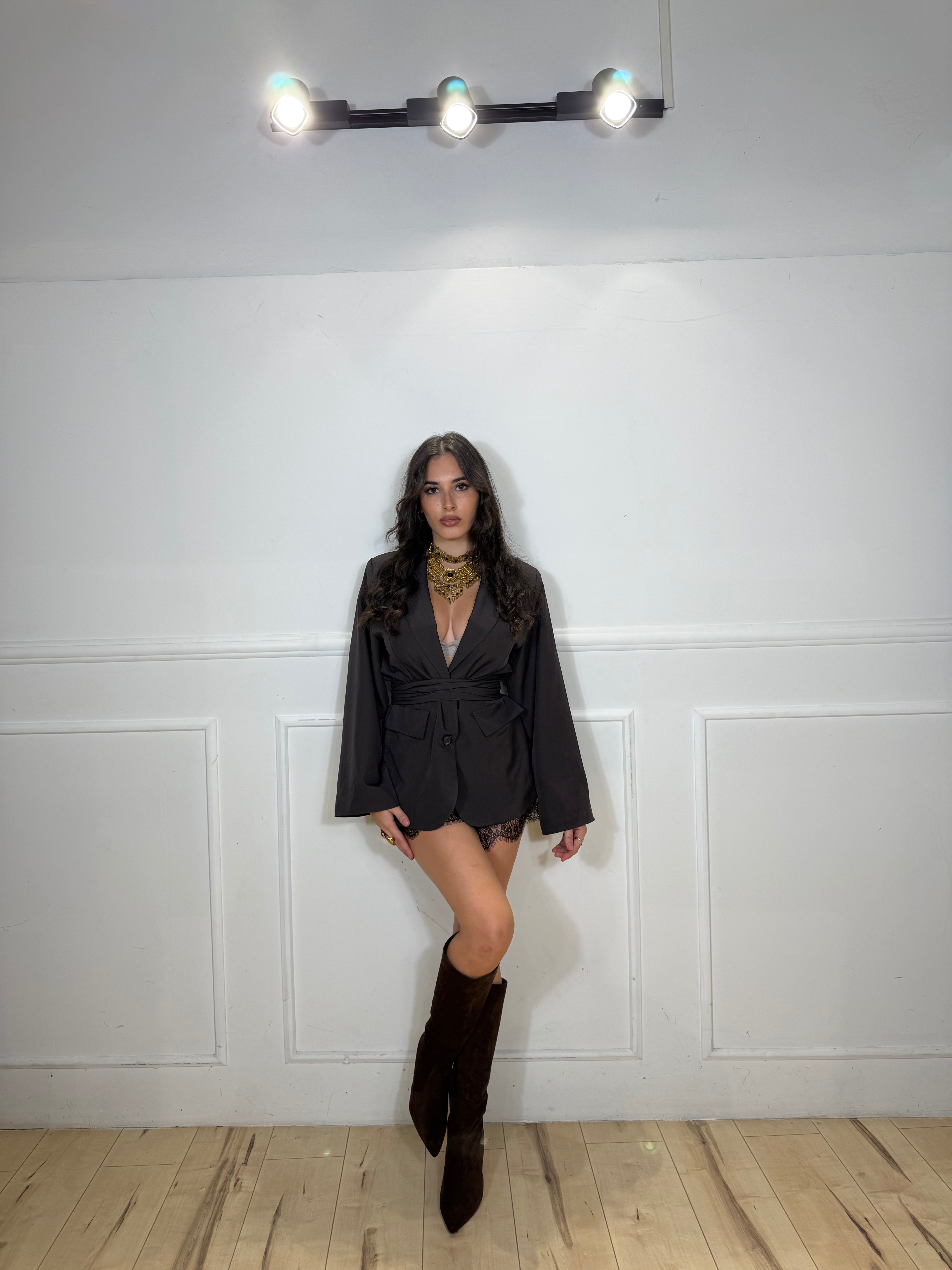 Giacca kimono con fusciacca regolabile, disponibile in taglia unica.