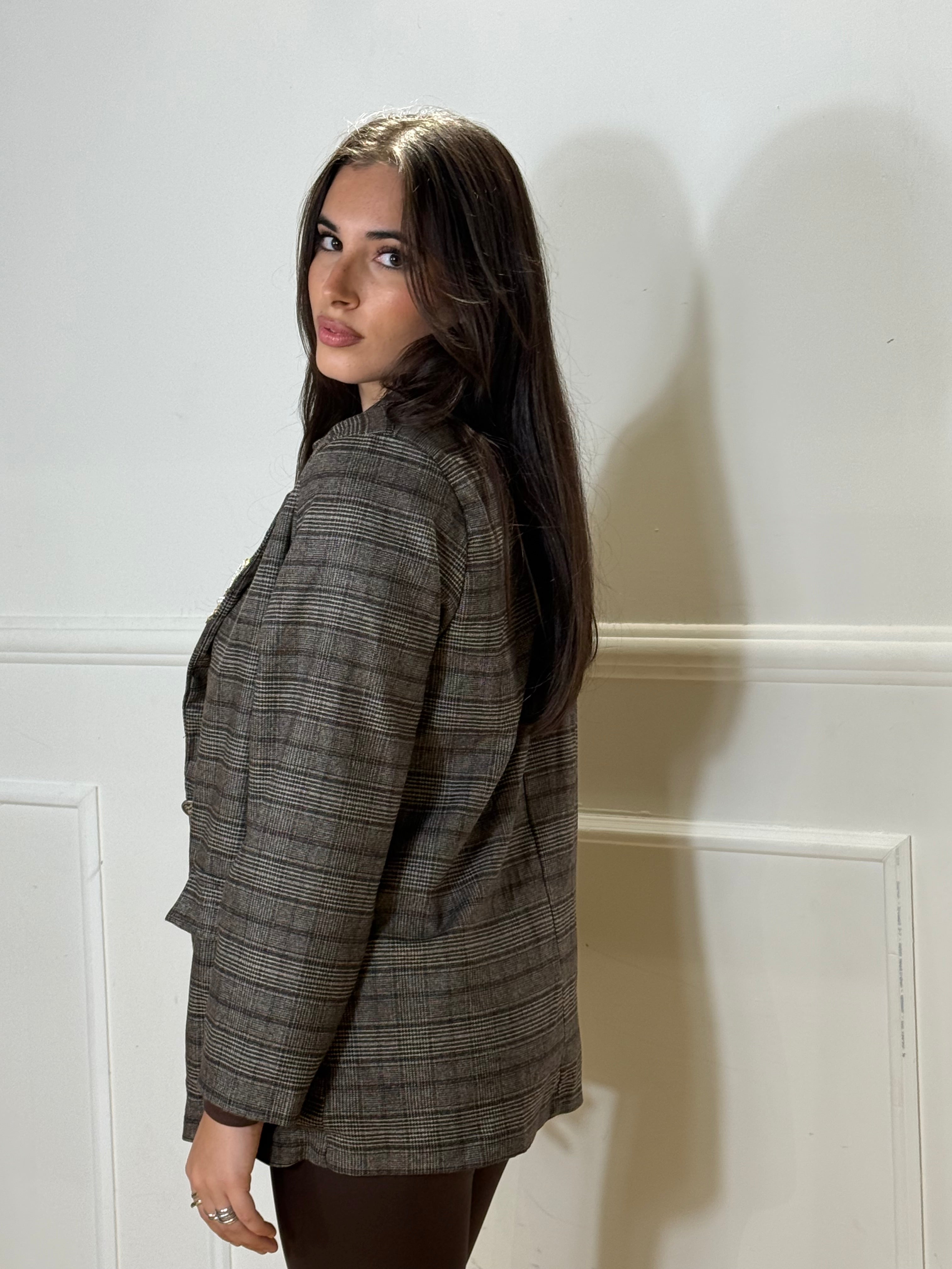 Giacca over Size foderata internamente. Disponibile in taglia unica, veste bene fino ad una taglia 48.