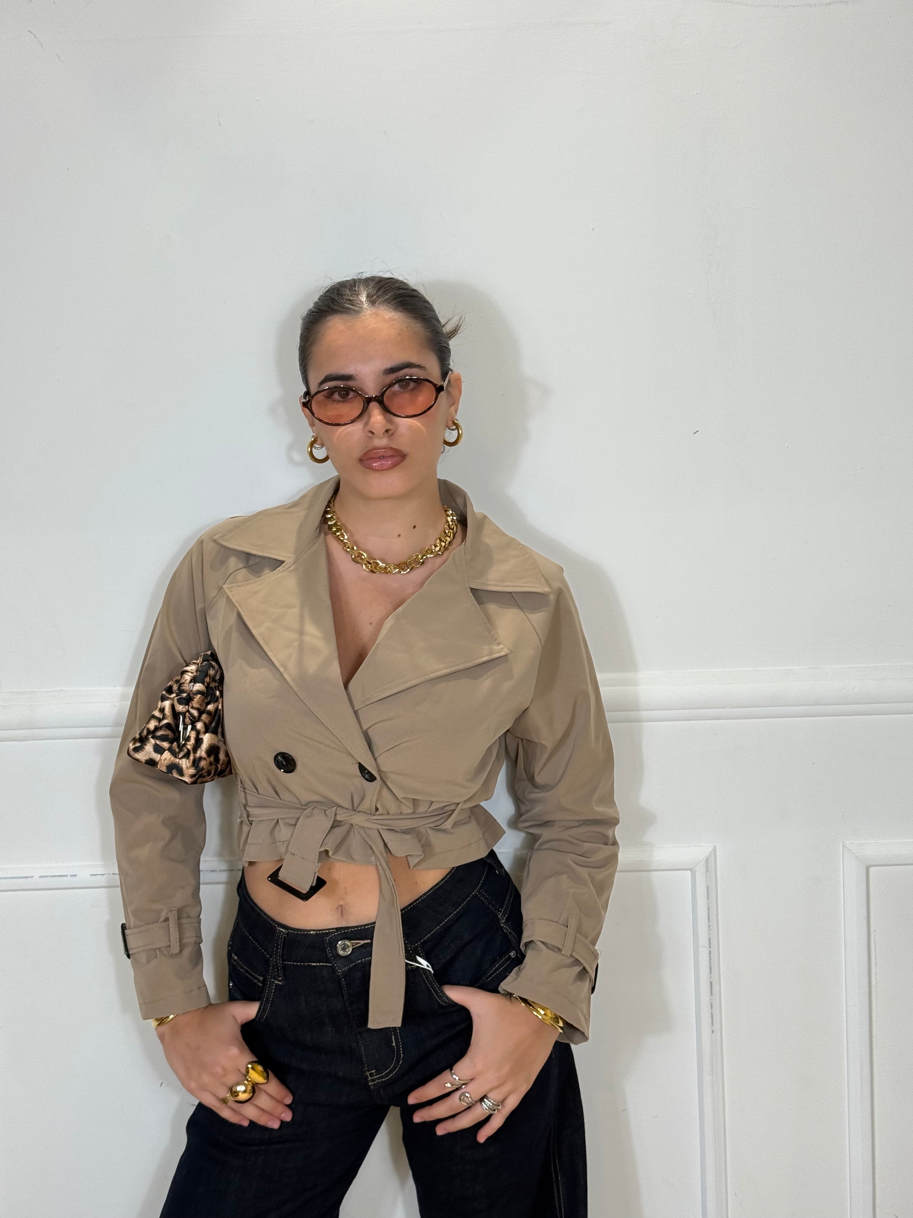 Trench over con cintura regolabile, disponibile in taglia unica.