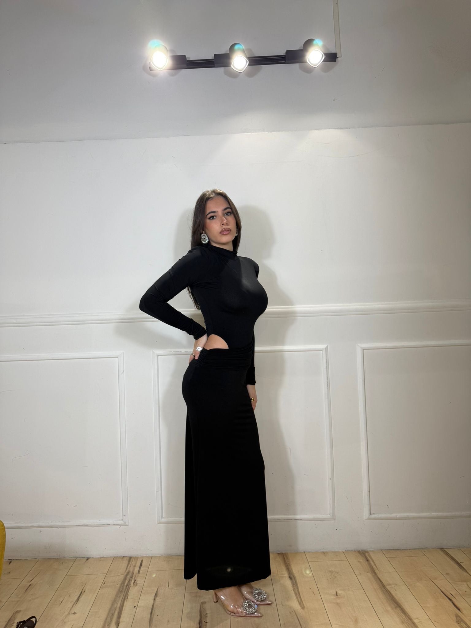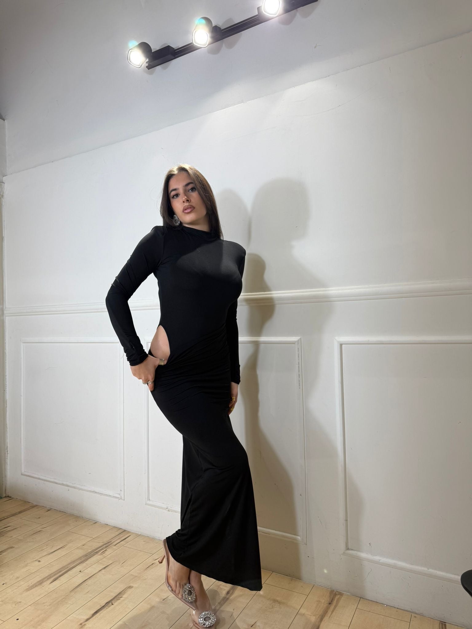 Abito lungo in lycra, molto elastico. Disponibile in taglia unica, veste bene fino ad una taglia 46.