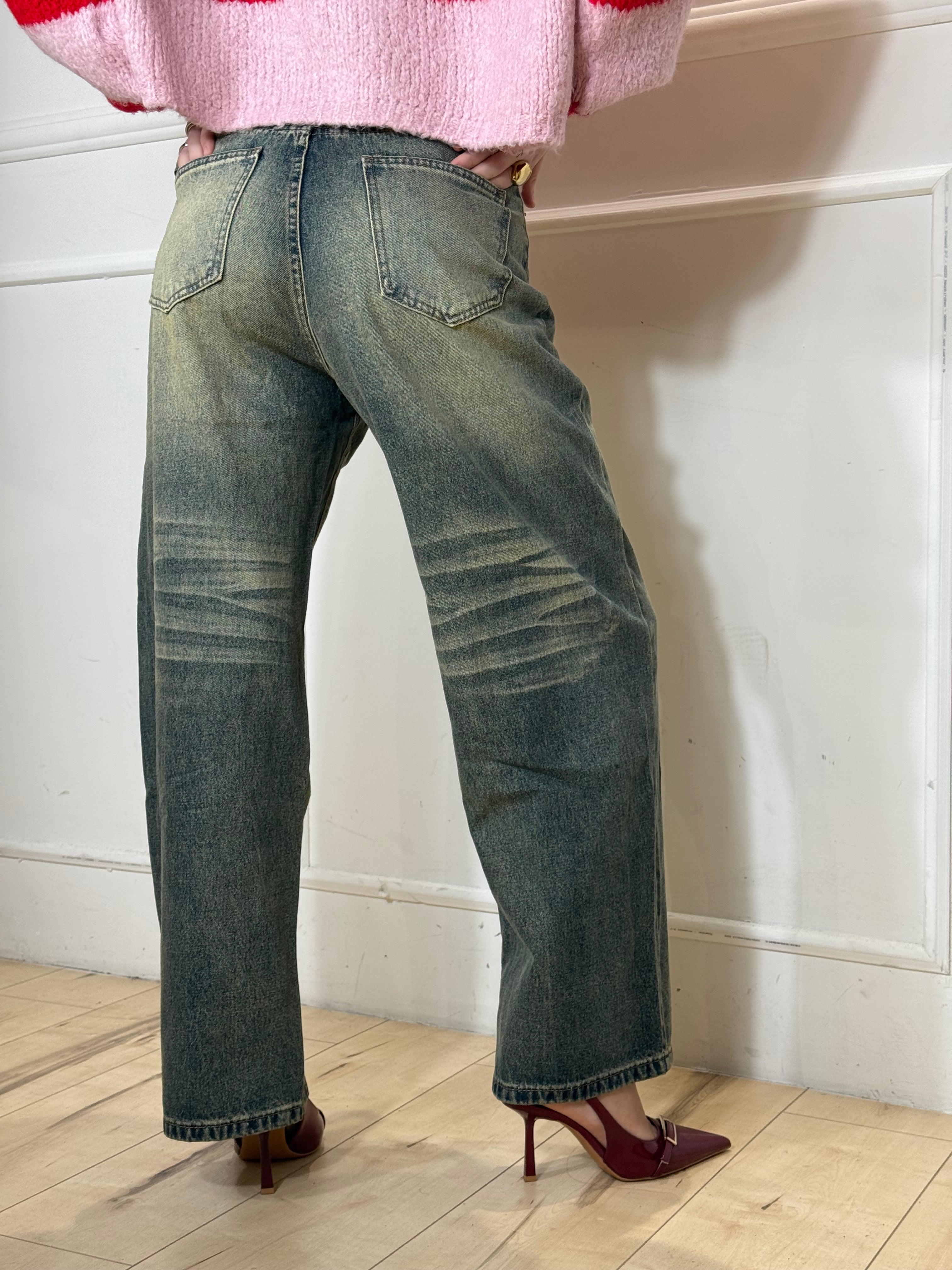 Jeans a palazzo, in tela fissa a vita media. Disponibile in taglie.