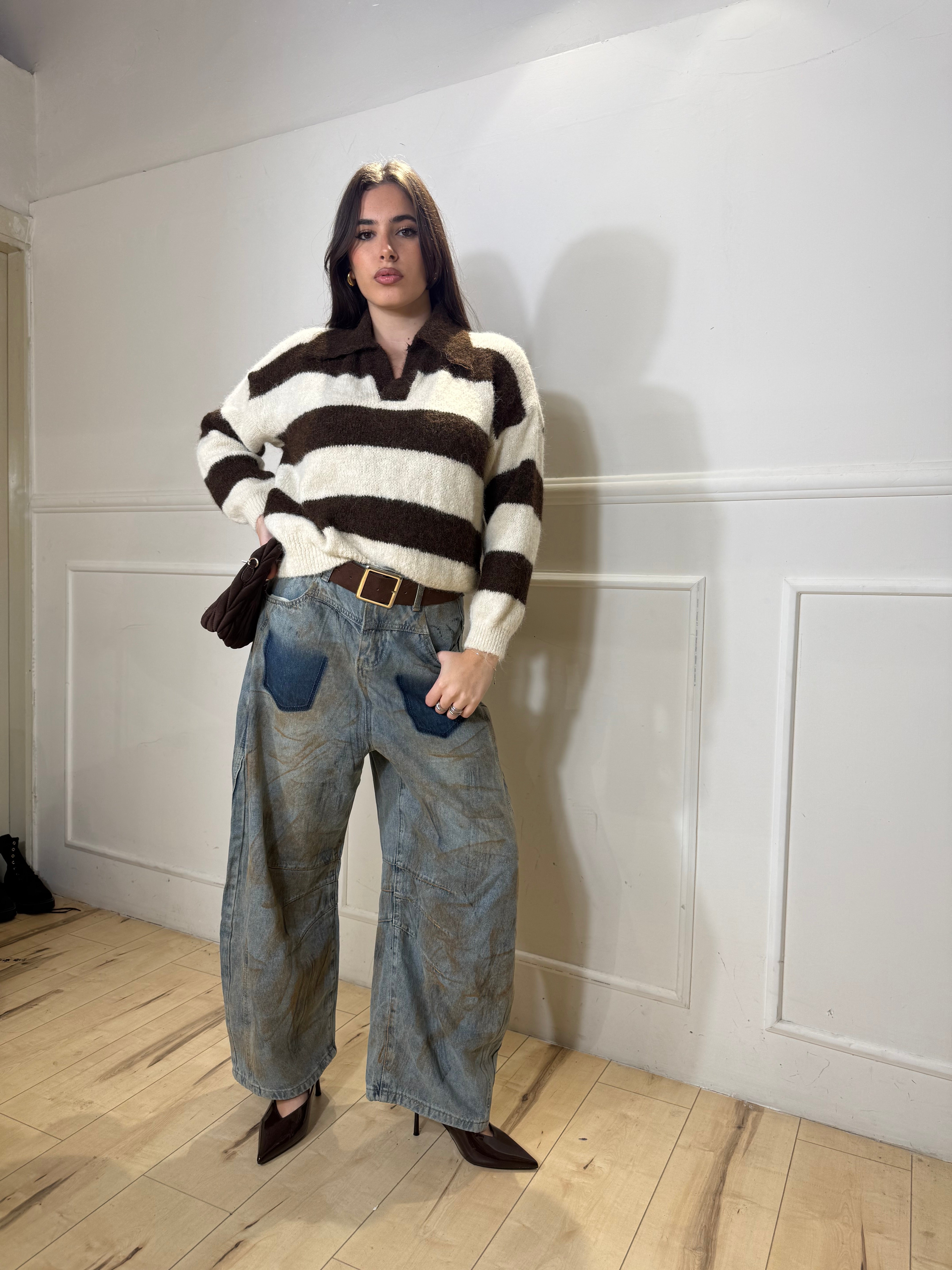 Jeans in tela fissa, non elastico, modello ballon. Disponibile in taglie.