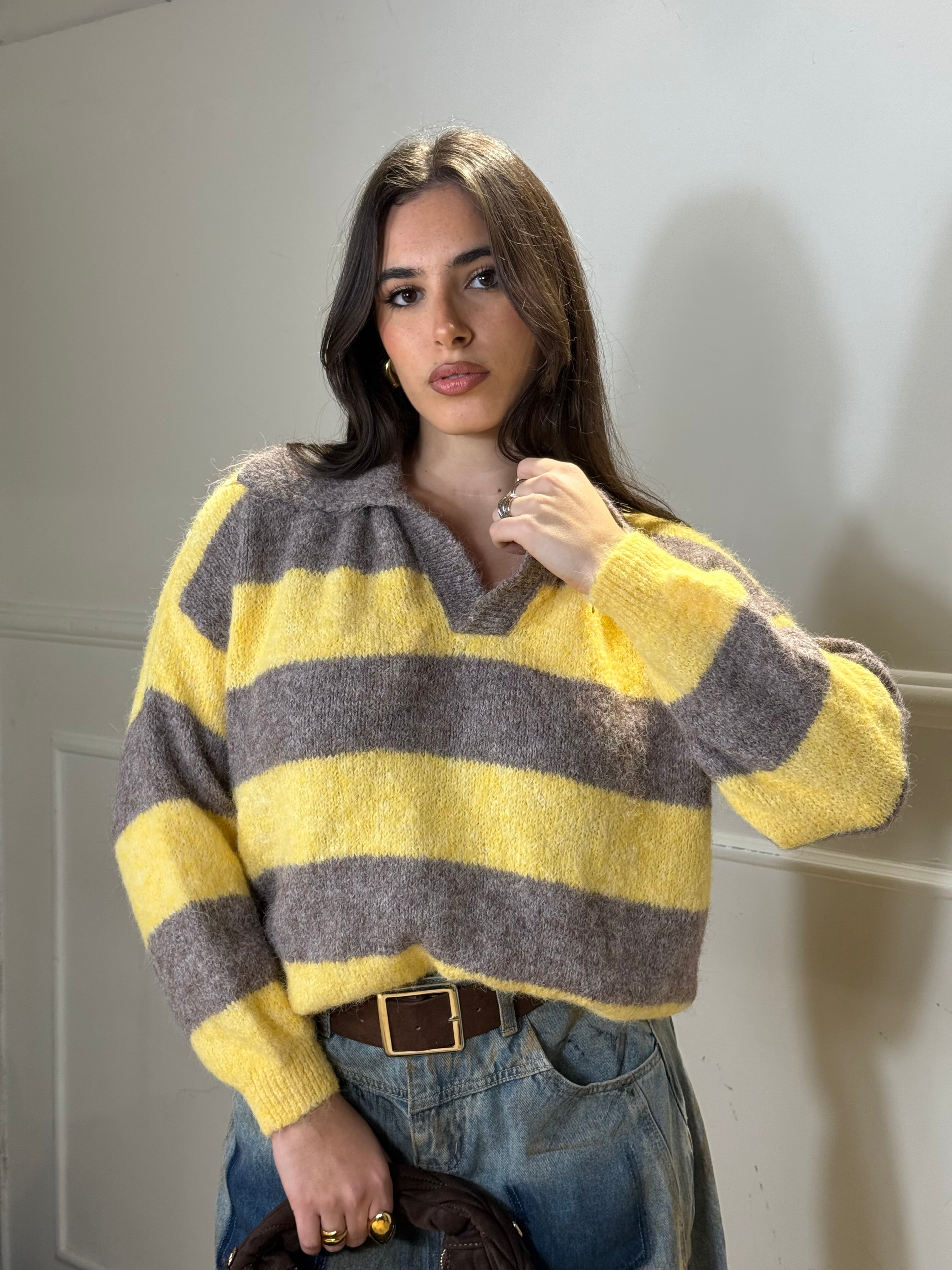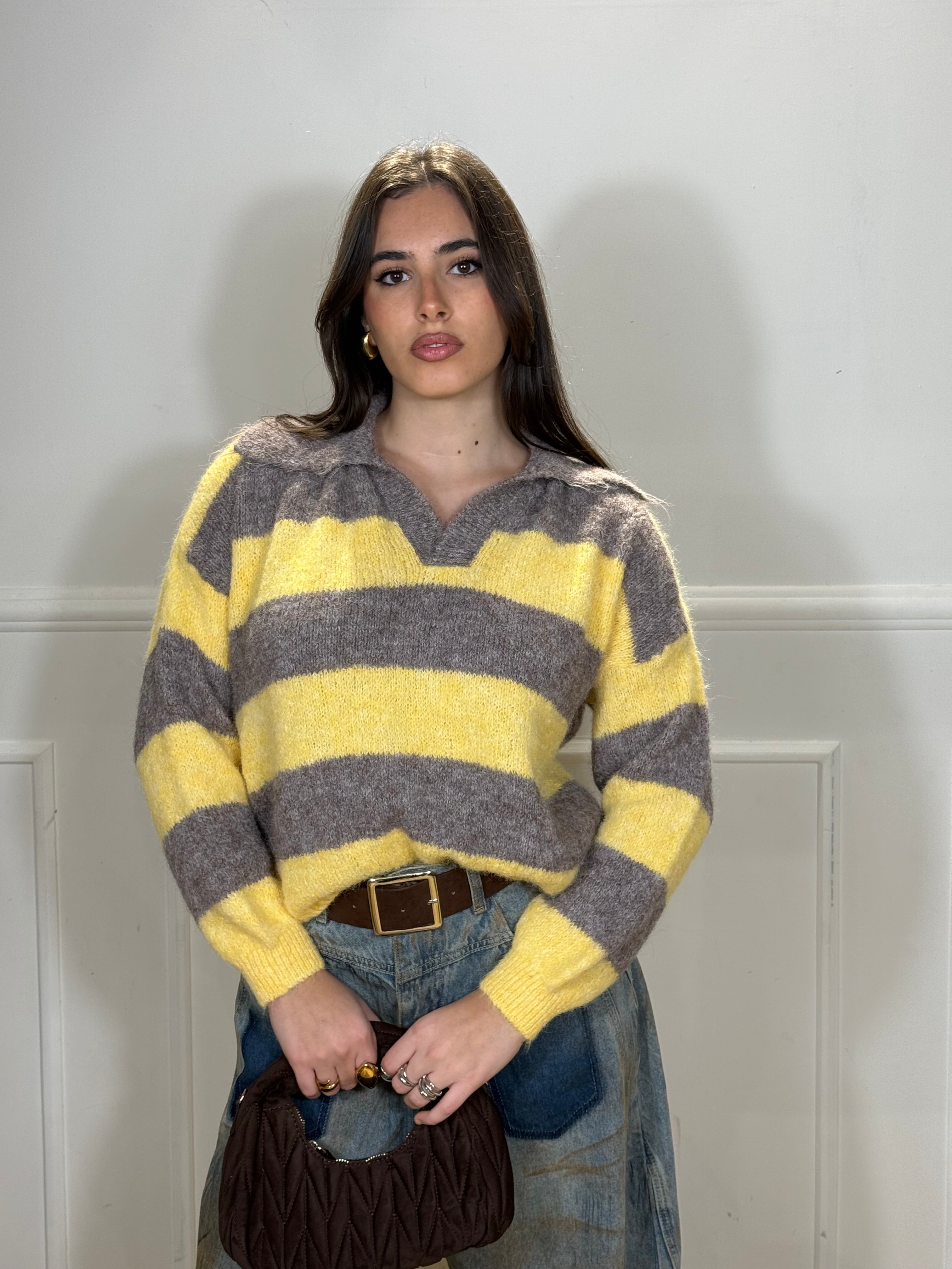 Pull over con colletto in lana. Disponibile in taglia unica, veste bene fino ad una taglia XL.