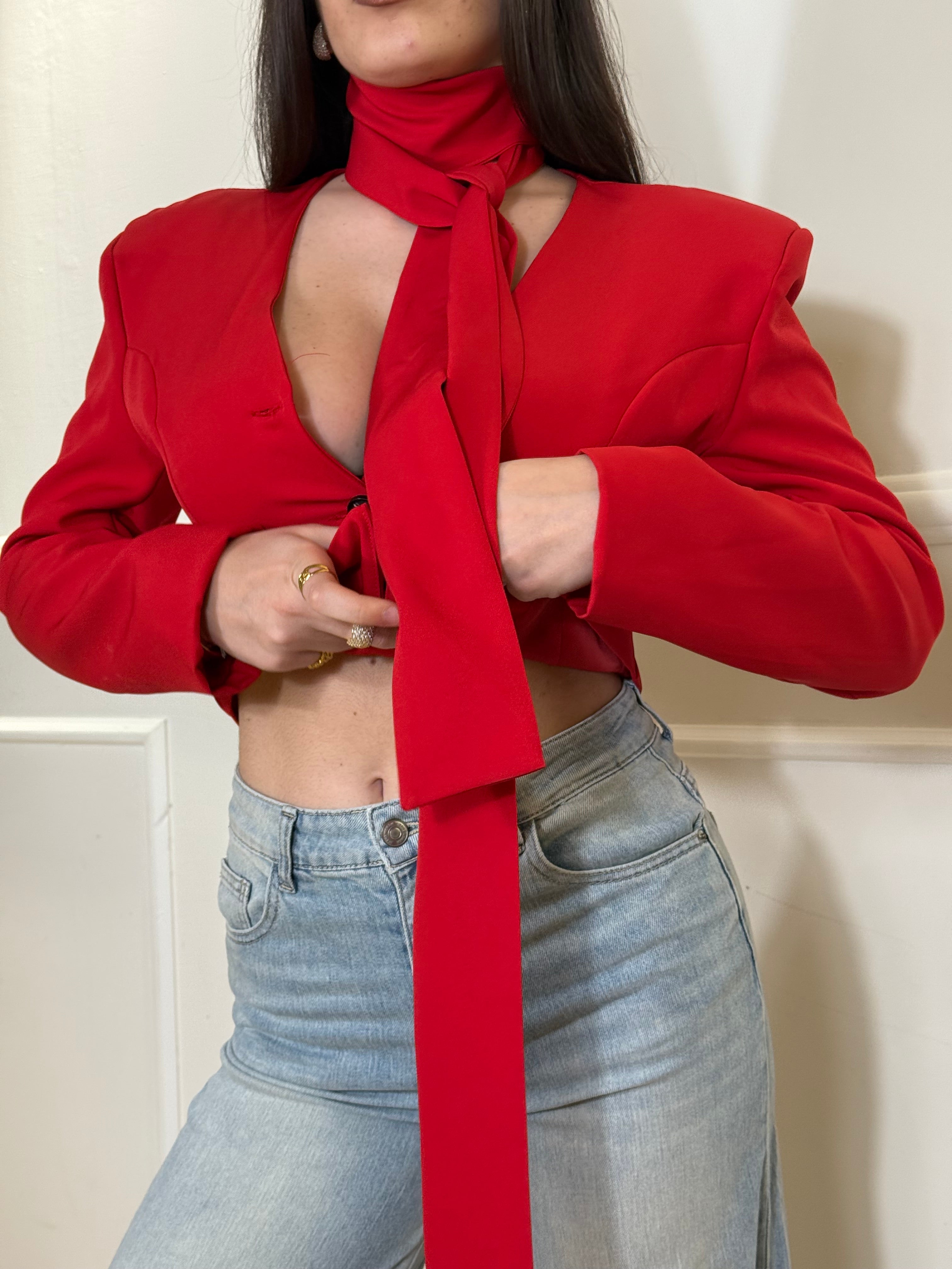 Giacca con bottoni e fusciacca regolabile. Disponibile in taglia unica, veste bene fino a una taglia 42.