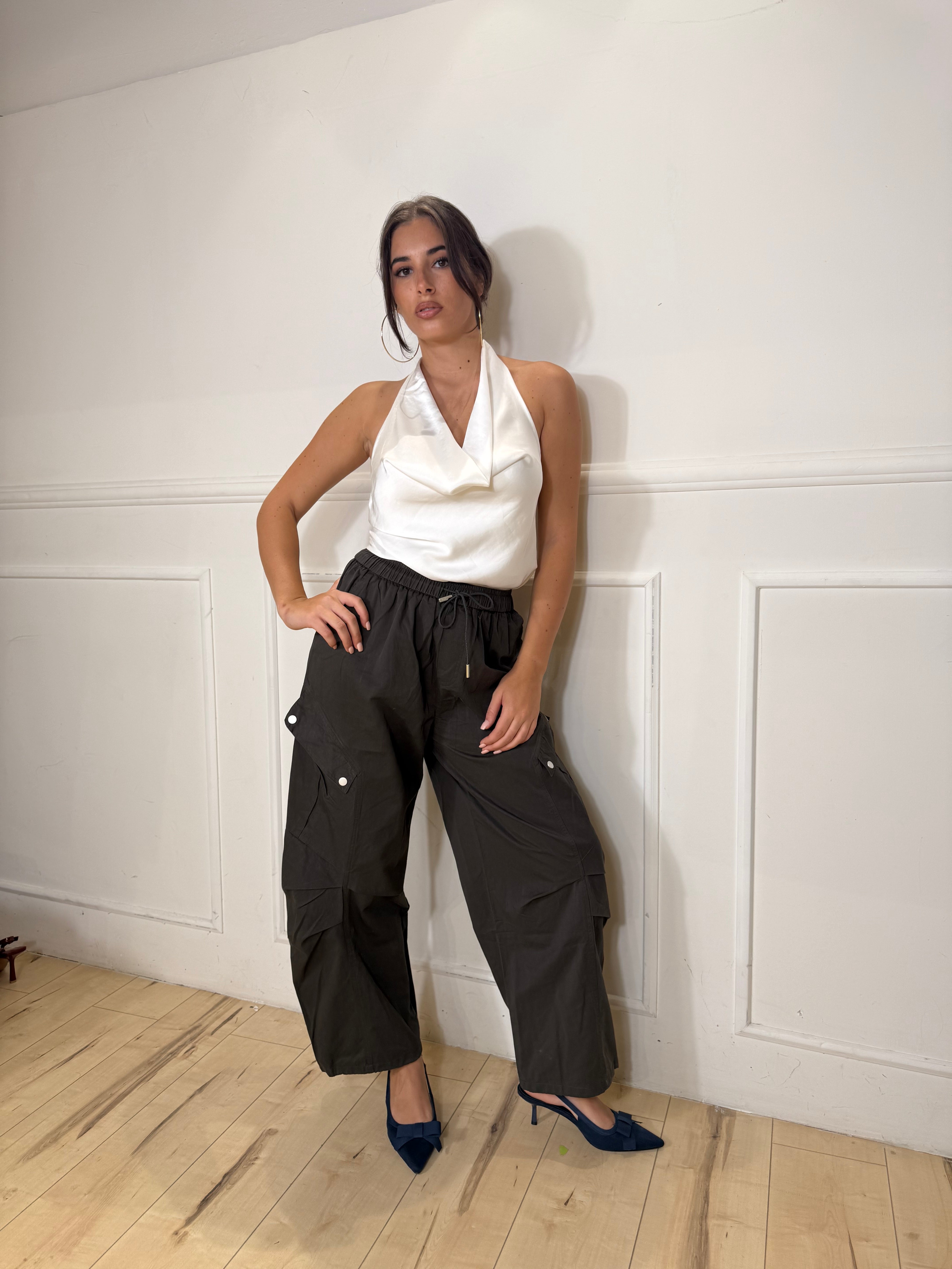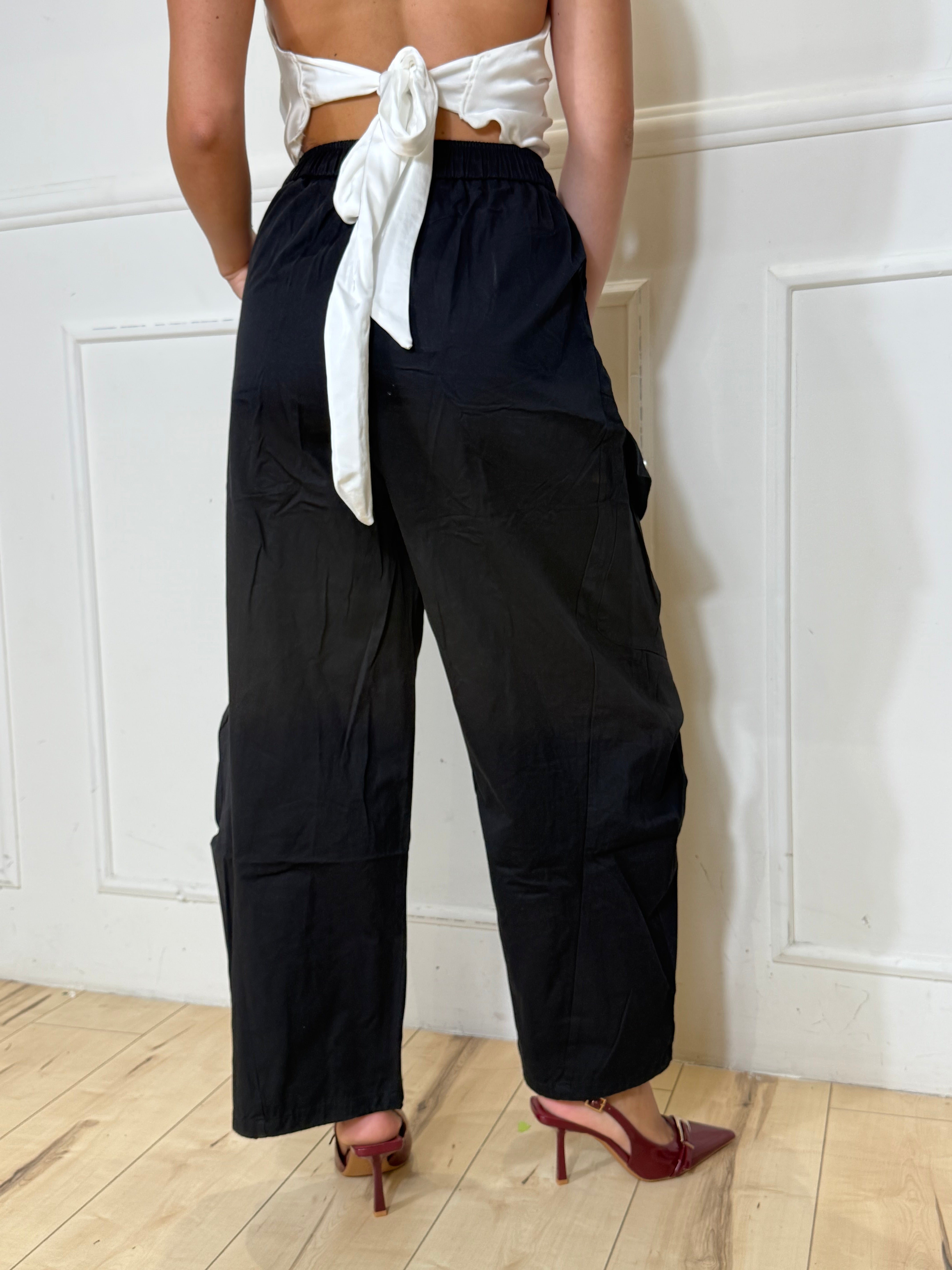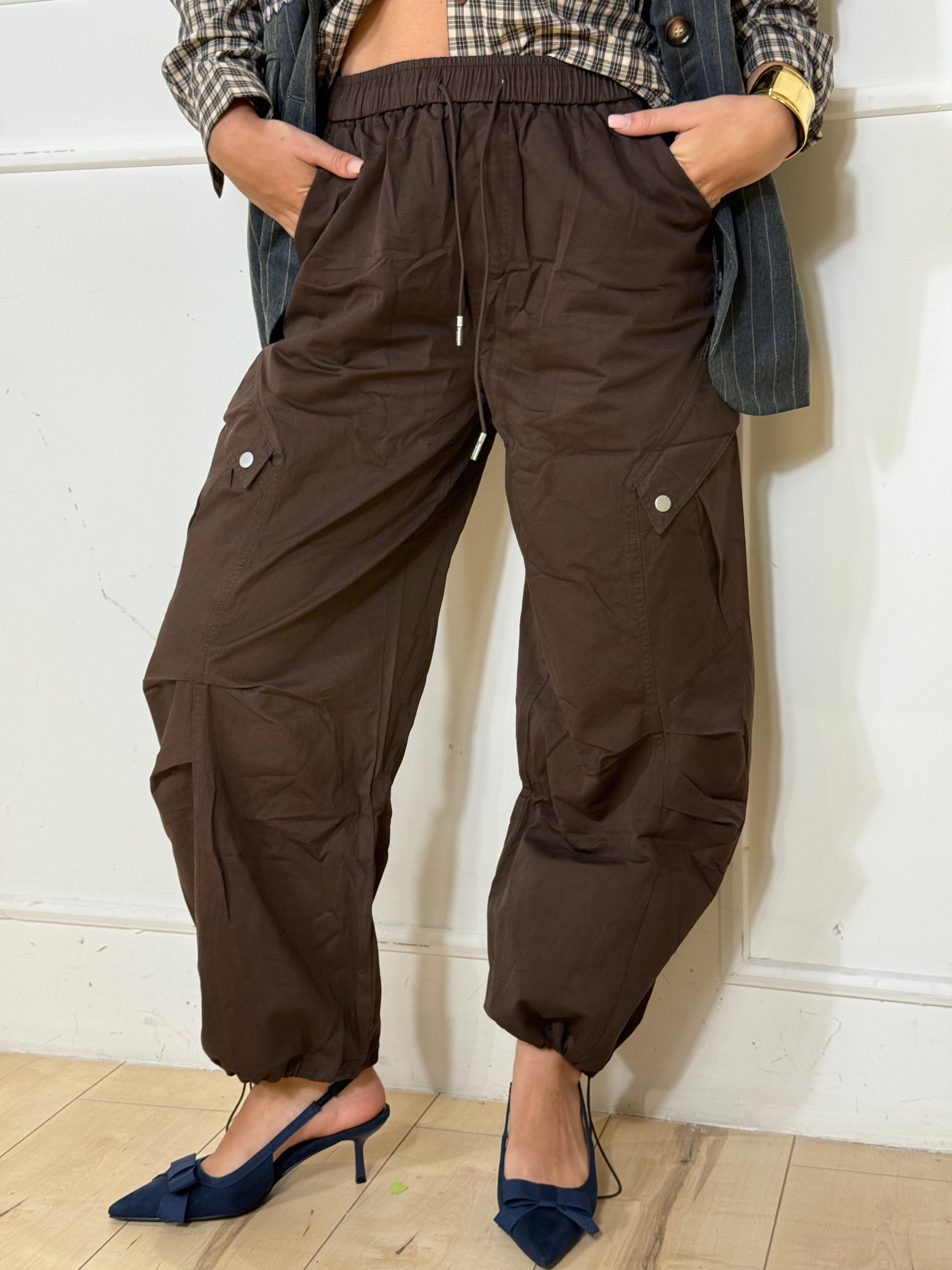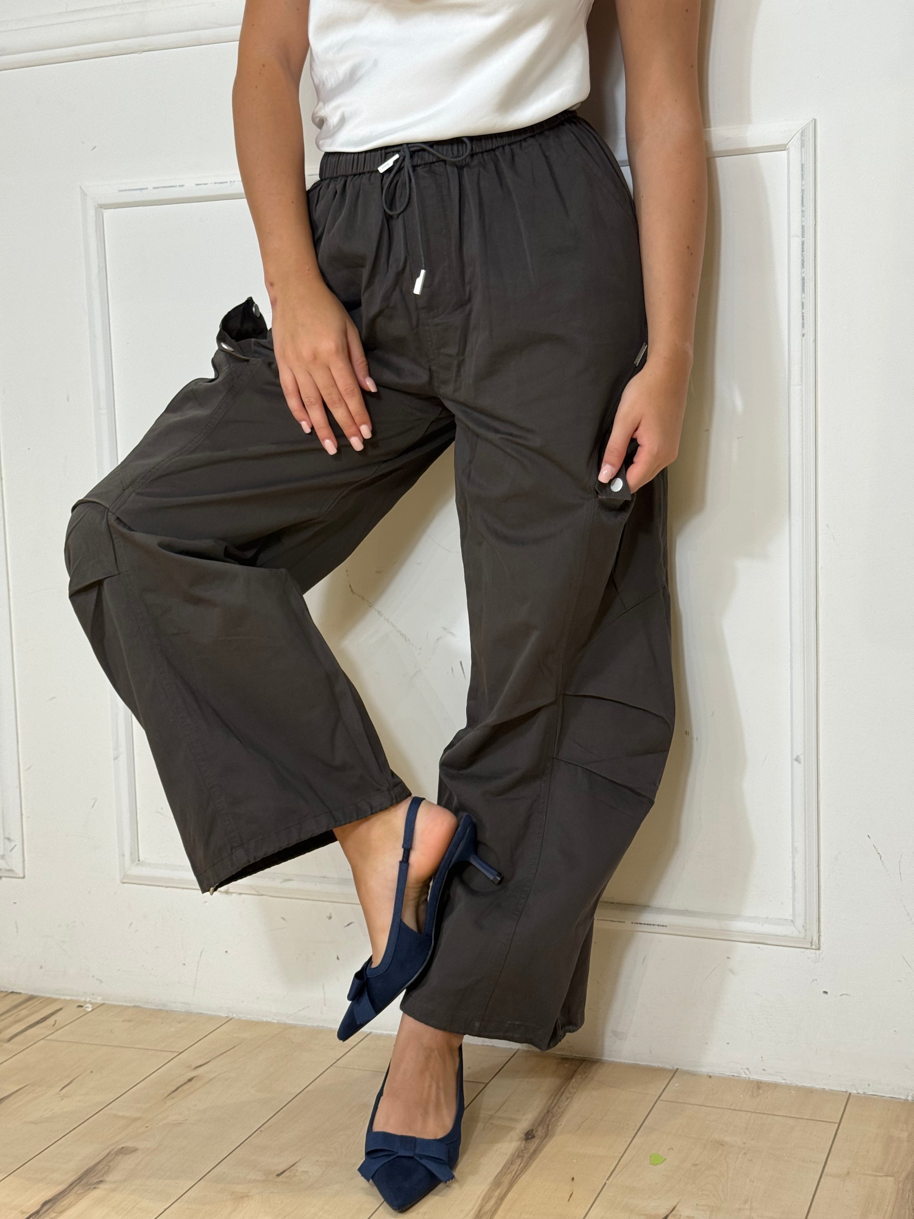 Pantalone con elastico regolabile in fondo con coulissi. Disponibile in taglie.